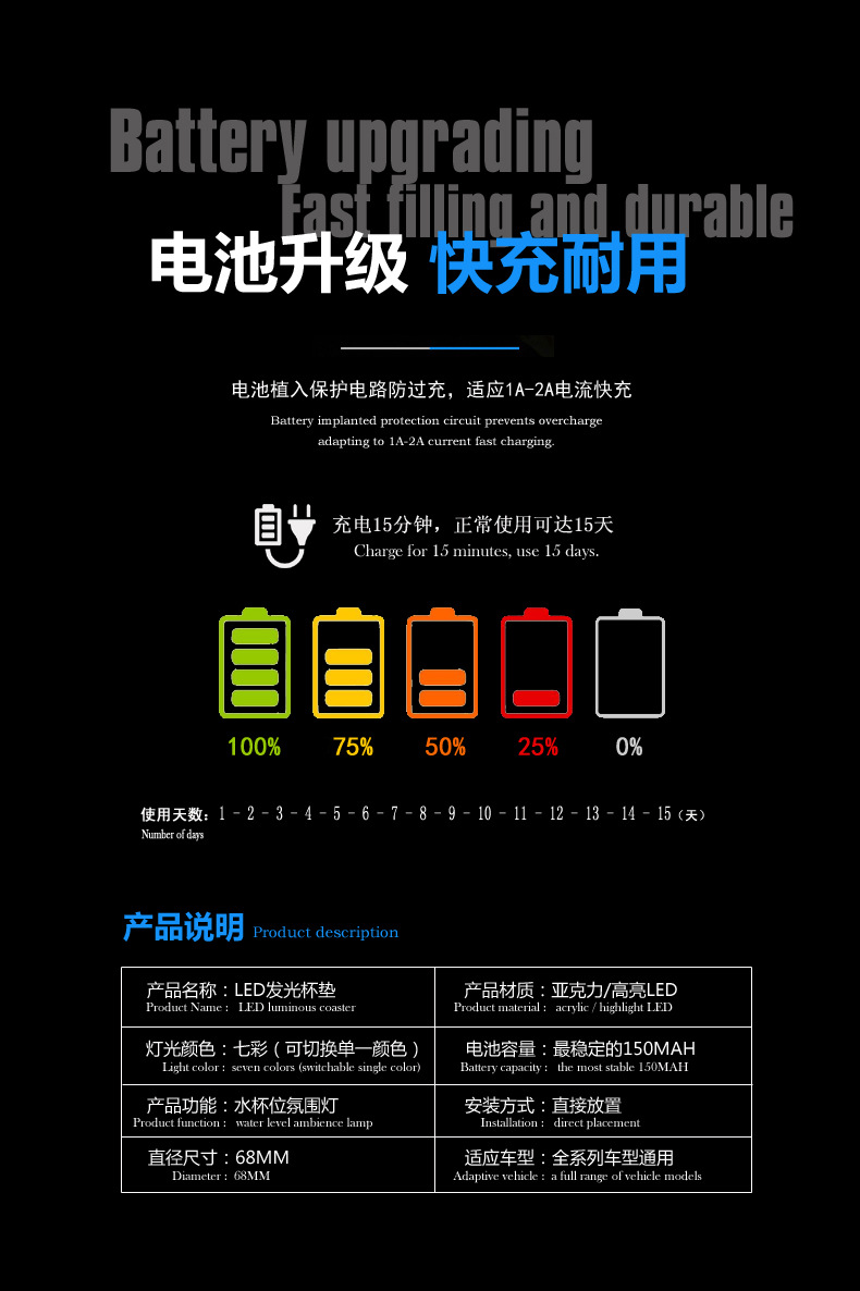 Автомобильные светодиодные светоизлучающие подставки для воды с завода прямых продаж Красочные водяные подставки для ламп трансграничной серии противоскользящие коврики для автомобилей
