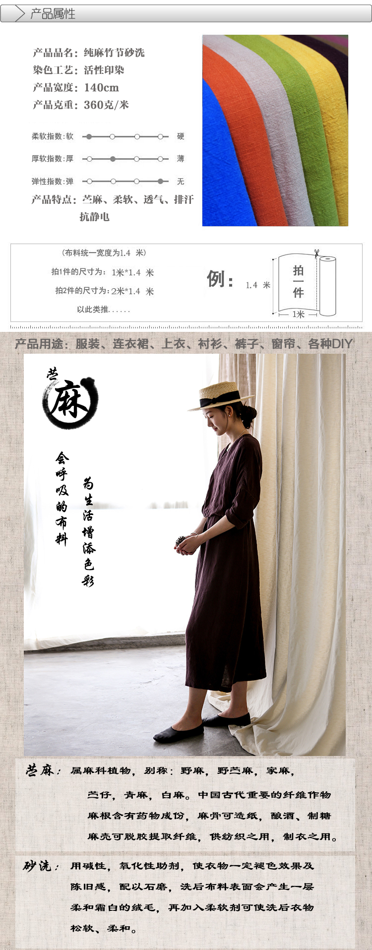 Средней толщины дышащая хлопчатобумажная льняная ткань рами для стирки песка одежда старые брюки старинная ткань рубашки в наличии