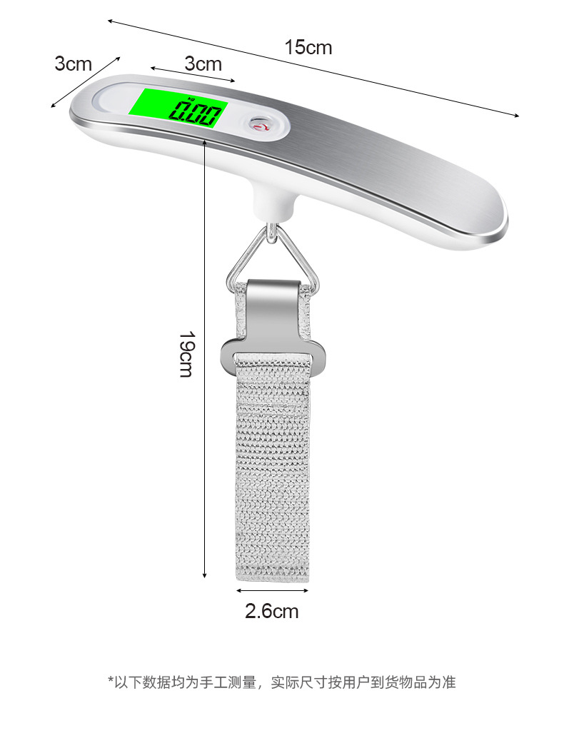 产品重量:裸秤70g-85g;整套钩子110g ,行李125g(彩盒+电池12g+说明书)