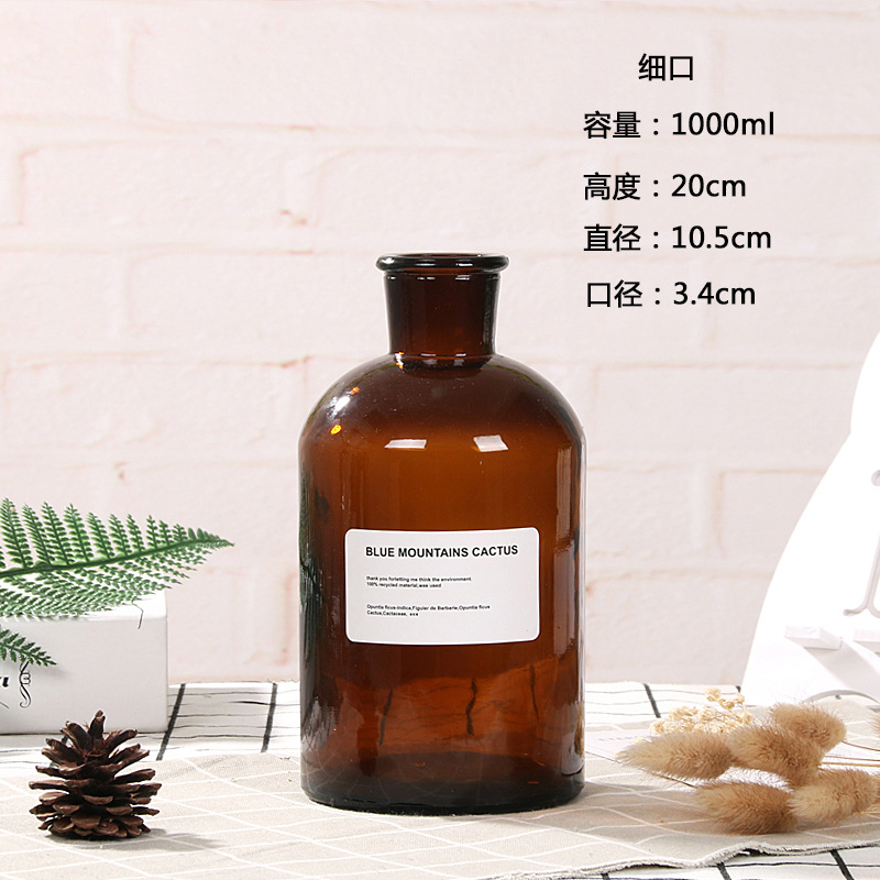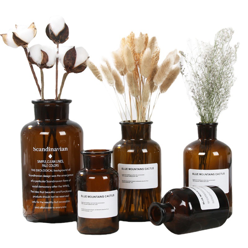 Оптовая Легкий Роскошный Стиль Скандинавский Стеклянная Ваза Домашняя Мебель Креативные Аксессуары Украшения Прозрачная Бутылка Гидропоники Коричневая Бутылочная Ваза