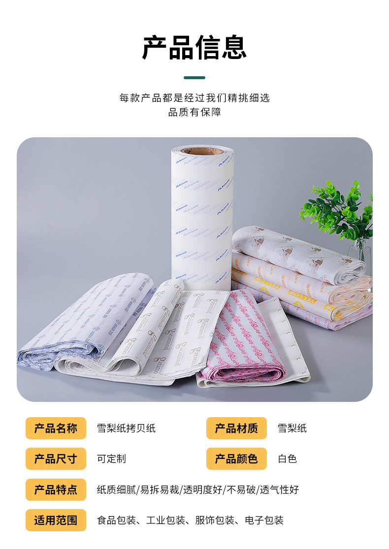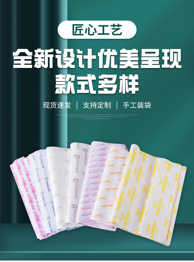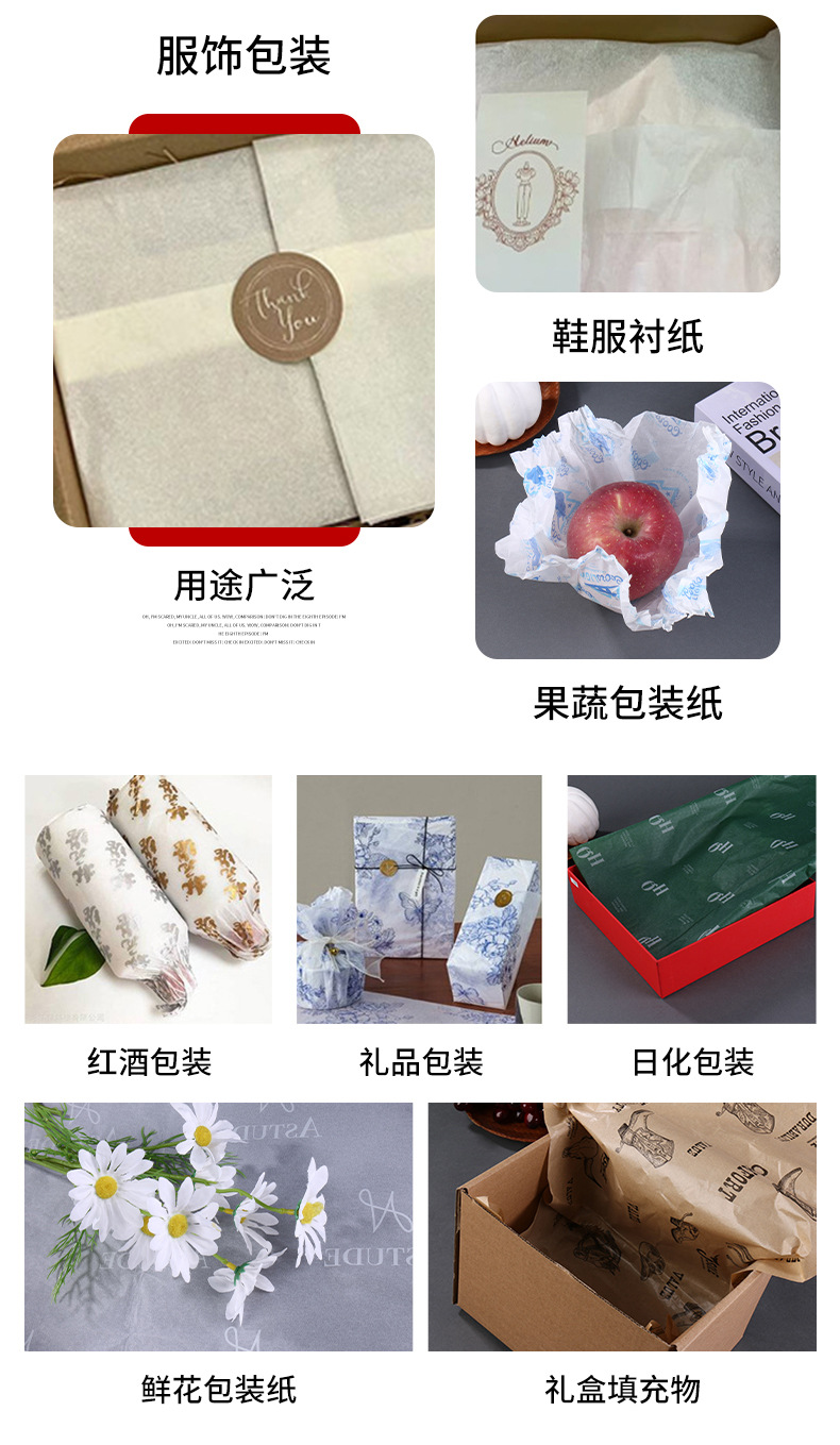 Производитель производит бумагу для подкладки одежды, бумагу для копирования с индивидуальным одноцветным логотипом, влагостойкую упаковочную бумагу.