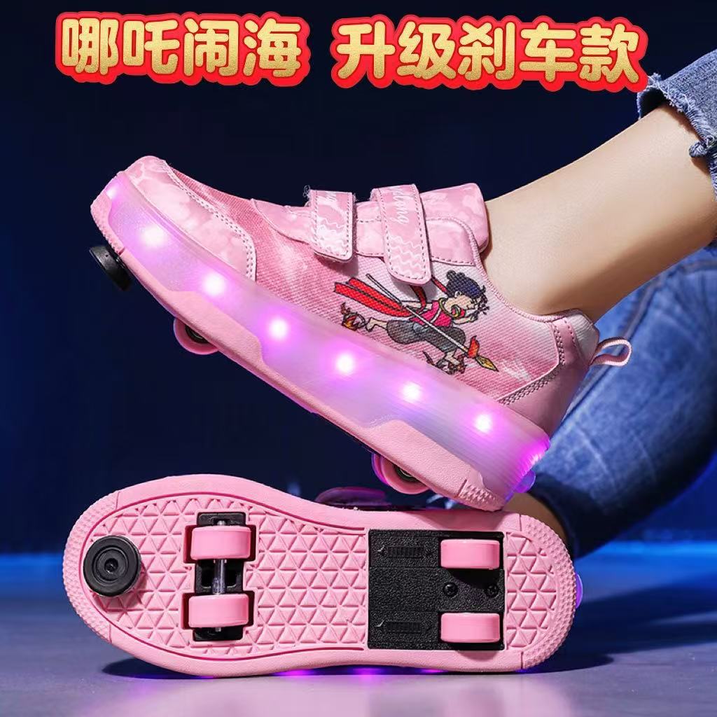 Трансграничная поставка прогулочной обуви с зарядкой для мальчиков и девочек, взрослых, обувь для роликовых коньков, сверхлегкая обувь для колес с переключателем, светодиодная подсветка