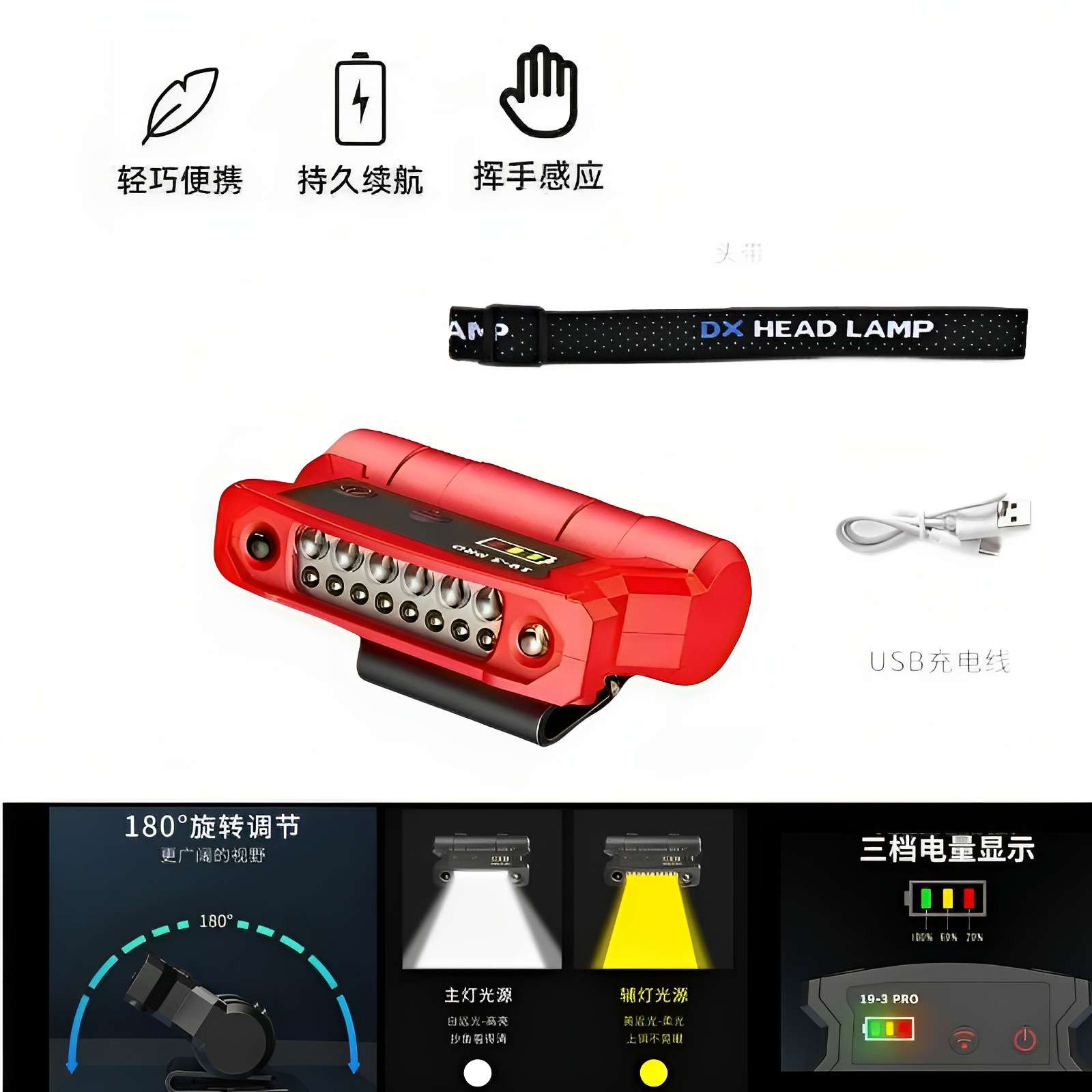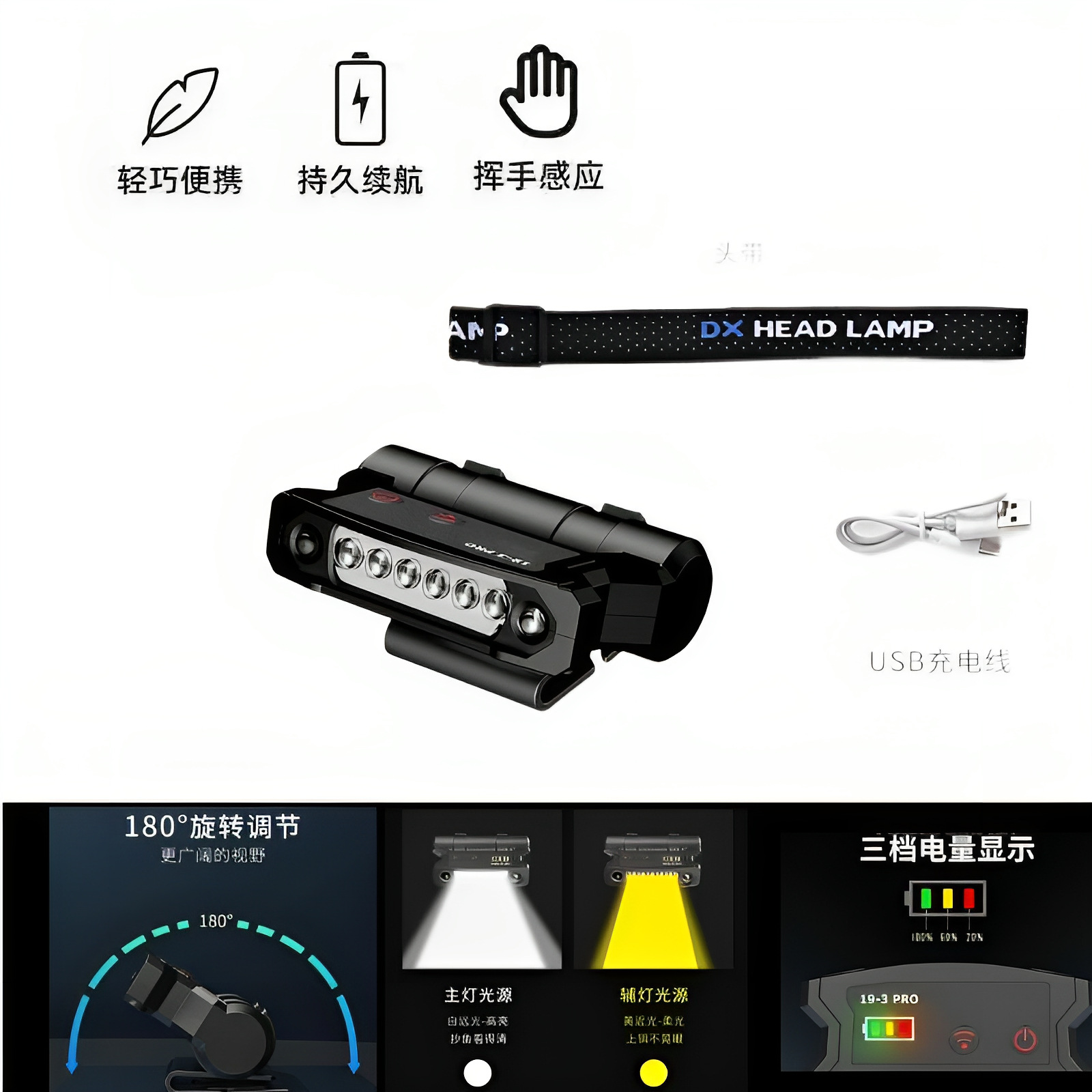 Индукционный налобный фонарь с двойным желтым и белым светом для ночной рыбалки, срок службы батареи 7-15 дней, свет для приманки, крепление на голову, двойное назначение для ночной рыбалки.