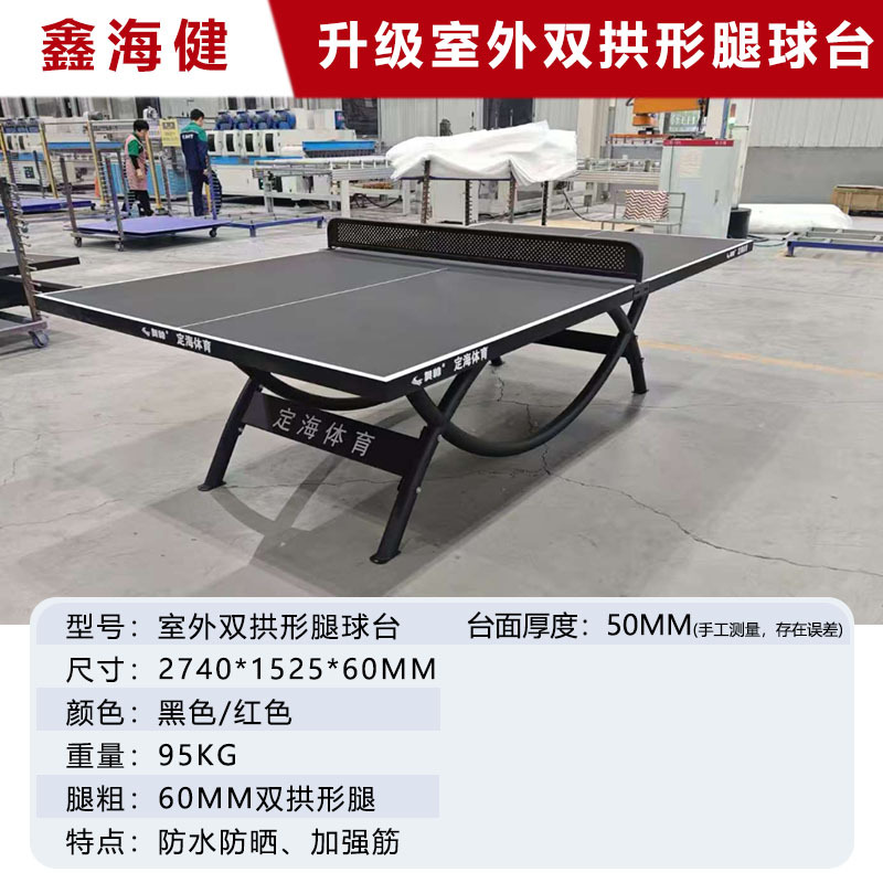 Стандартный уличный стол для настольного тенниса; Большой стандартный уличный стол для настольного тенниса с фланцами; Большой усиленный уличный стол для настольного тенниса с фланцевой рамой и полукруглой формой.; Большой фланцевый стол нового национального стандарта с четырьмя вертикальными и четырьмя горизонтальными столешницами.; Новый настольный теннис для улицы, соответствующий обновленному национальному стандарту; Стол для настольного тенниса из титановой стали на открытом воздухе; Обновленная уличная двухарочная ножка, доступна в черном/красном цвете