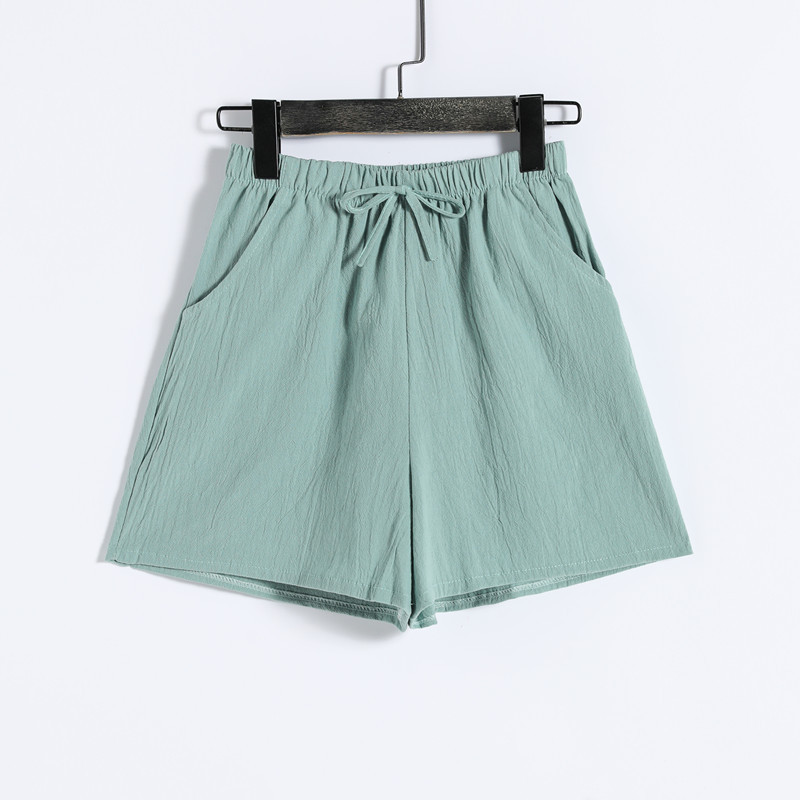 Женские летние шорты из хлопка и льна, широкие брюки А-образной формы для спортивных тройных брюк больших размеров, трансграничные Свободные повседневные брюки с высокой талией