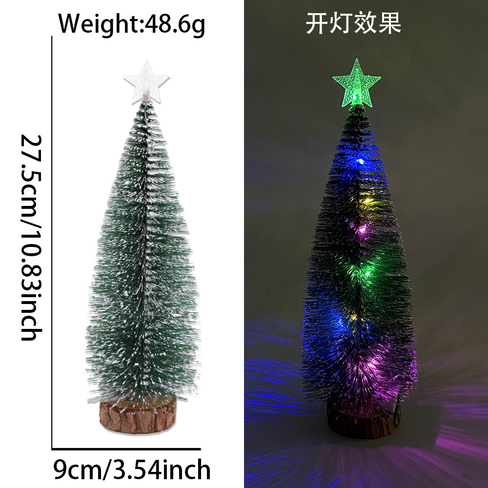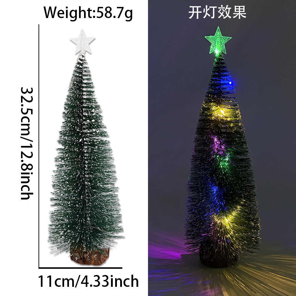 Зеленая белая снежная сосна, светодиодная светящаяся сосновая игольная елка, рождественские украшения, настольные украшения, мини-рождественская елка