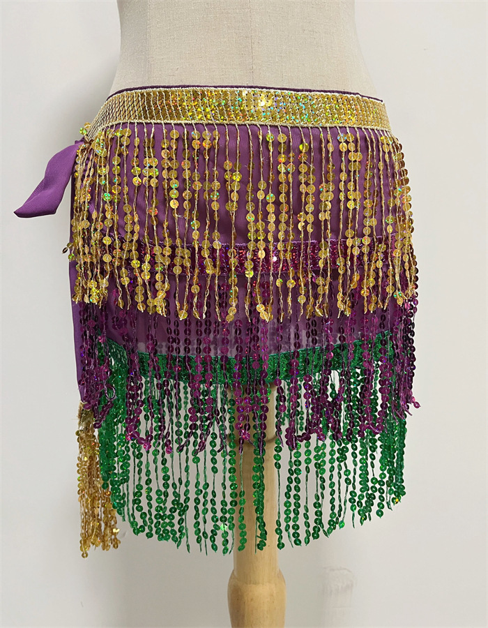 名称:加密亮片三彩流苏腰链