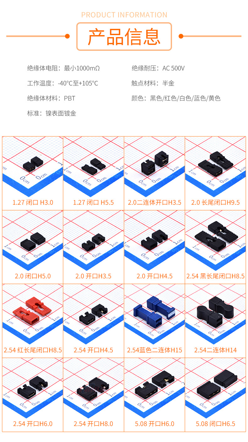 Крышка короткого замыкания 1,27/2,0/2,54/5,08 мм открытая и закрытая длинная крышка прыгуна штыря короткого замыкания цвета ручки Быстрая