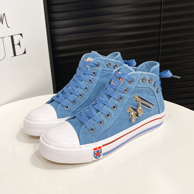 Джинсовые высокие парусиновые туфли для женщин, повседневная обувь в корейском стиле, весна 2024, новые кроссовки большого размера в стиле ретро на молнии