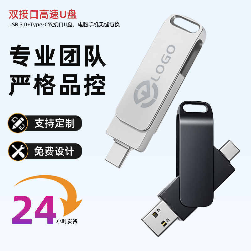 Type-c мобильный телефон компьютер двойного назначения U диск 16g двойной интерфейс 64g пользовательский LOGO металлический вращающийся 32g USB-накопитель оптом