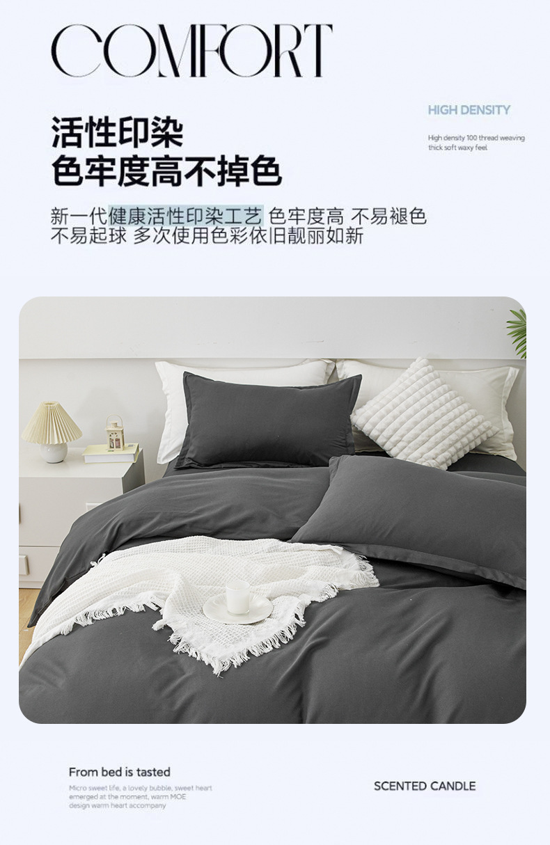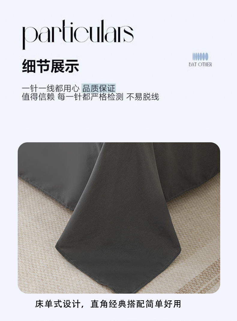 【工艺说明】暗线锁边被套,直角床单,无拉链信封式枕套