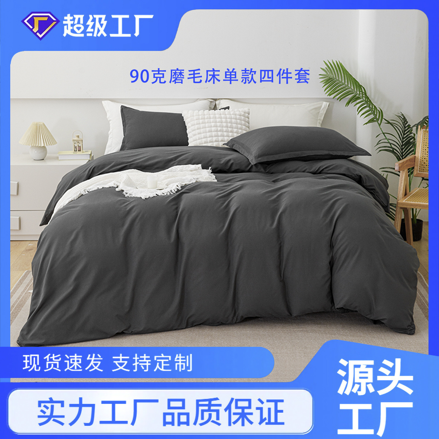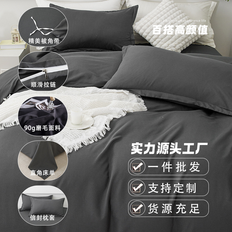 Однотонный комплект постельного белья из четырех предметов, простой комплект из трех предметов с пододеяльником из начеса, оптовая продажа постельного белья для экспорта.