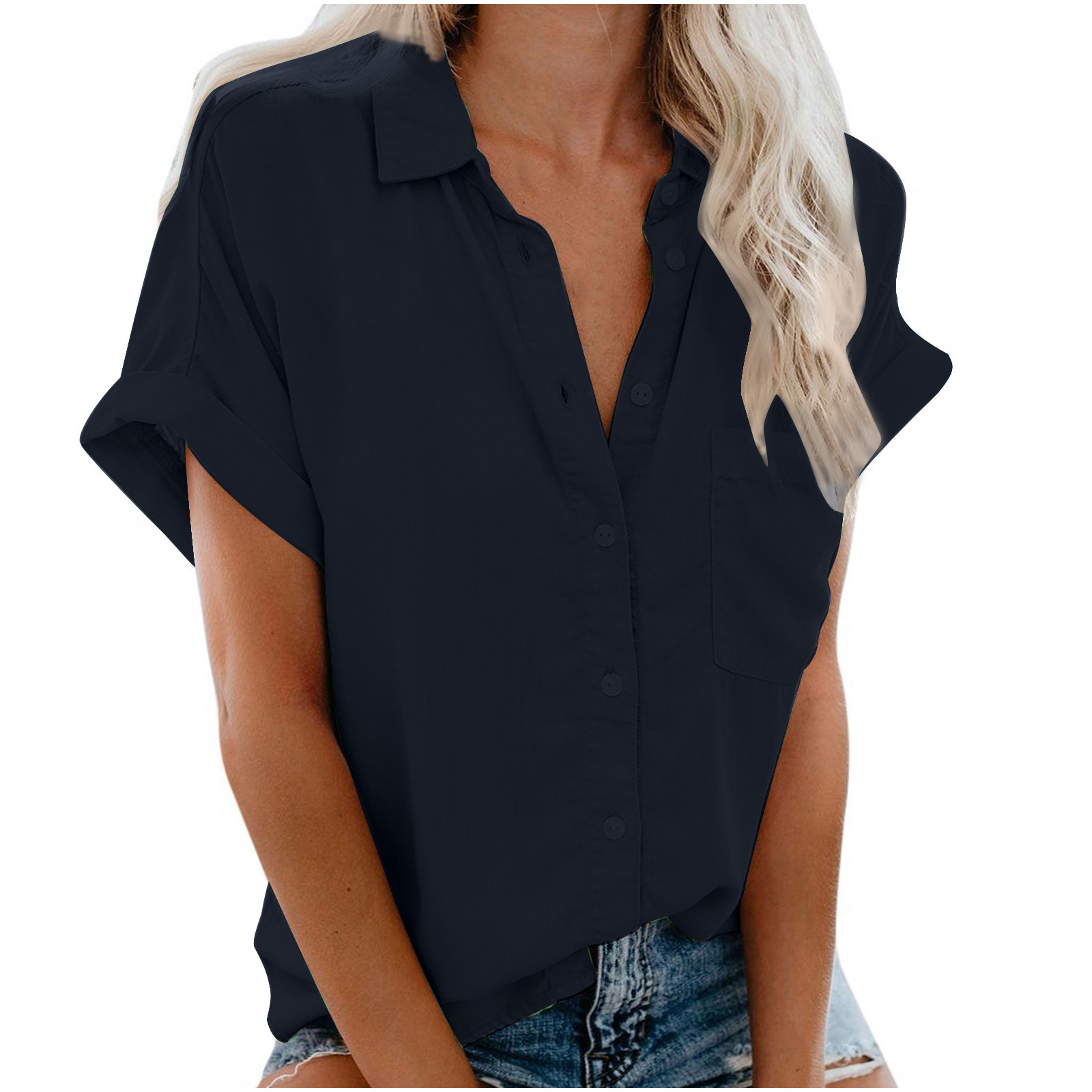 Трансграничная 2019 Летняя женская куртка-рубашка на пуговицах с лацканами Amazon со взрывами с короткими рукавами 1918