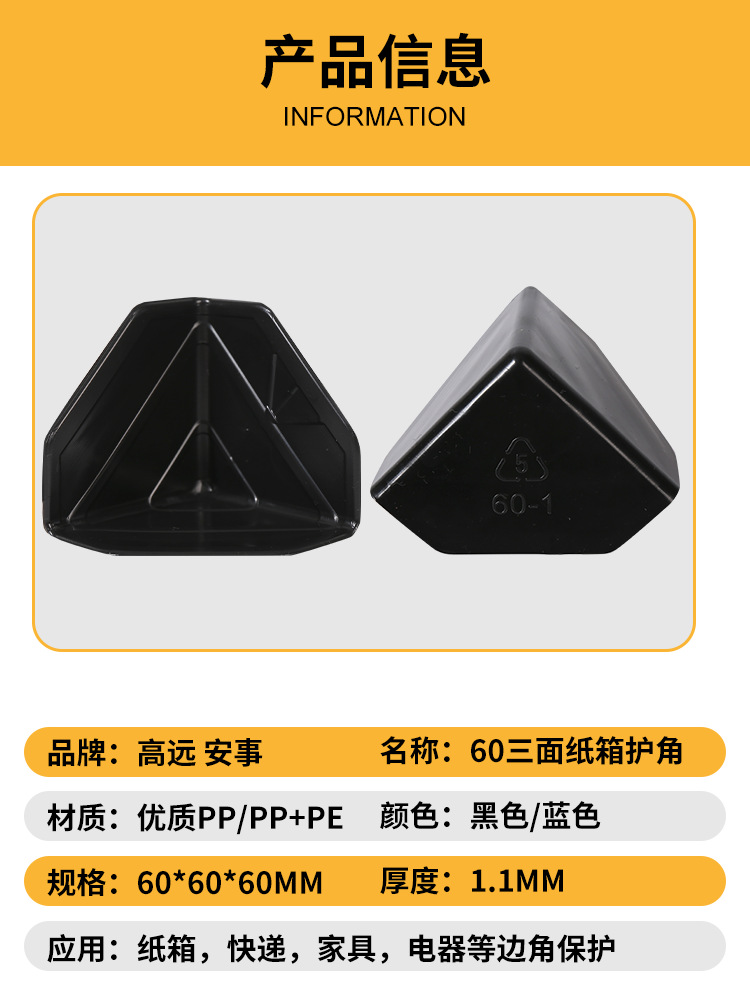 Пластиковый Угловой протектор Коробка Черный Оптовая 60 Трехсторонний пластиковый угловой протектор Домашняя упаковка Пластиковая упаковка Угол защиты от столкновений