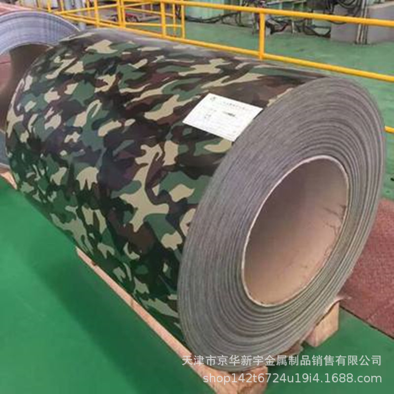 迷彩色印花彩涂卷可定做油漆:PE聚酯漆、HDP高耐候、SMP硅改性及PVDF氟碳。漆膜厚度:正面≥25μm、 背面≥15μm。屈服强度: S270GD~S550GD。基板锌层: 镀铝锌锌层: ≥AZ220g/㎡、 镀锌锌层≥Z275g/㎡。量大可定做模具加工各种图案印花彩涂卷。