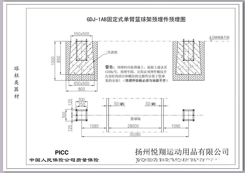 (伸臂2.25m:场地预埋件中心间距30.28m)