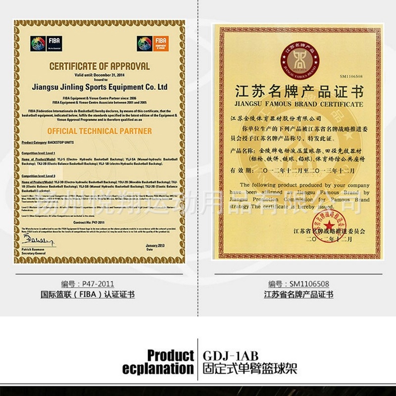 Баскетбольная стойка Jinling GDJ-1AB (Китайская баскетбольная ассоциация), фиксированная, с квадратной трубой, однорычажная, для установки на улице