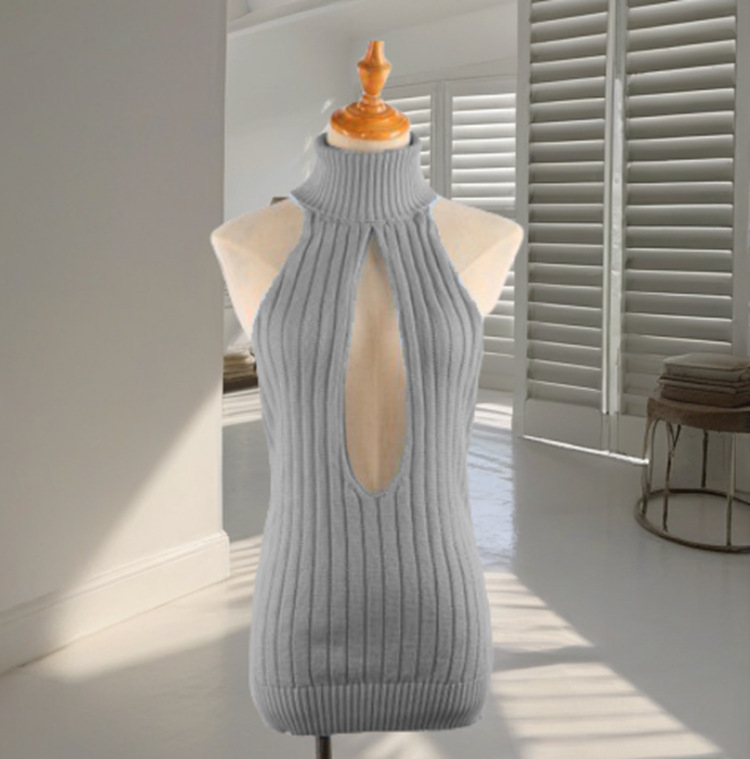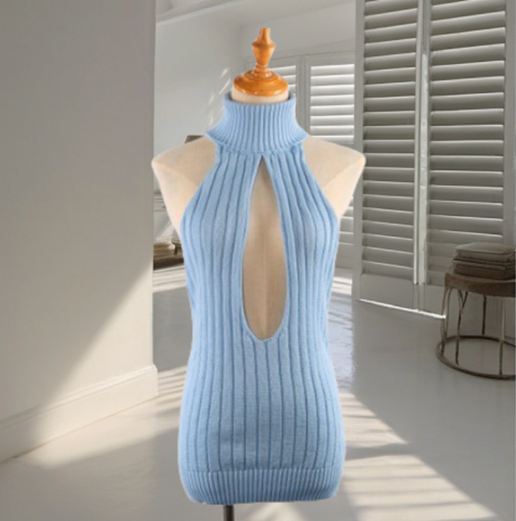 Секс-свитер с открытой спиной Женский убийца Девы с открытой спиной без рукавов на шнуровке Плечо утечка сексуальный страсть тонкий вязаный свитер для женщин