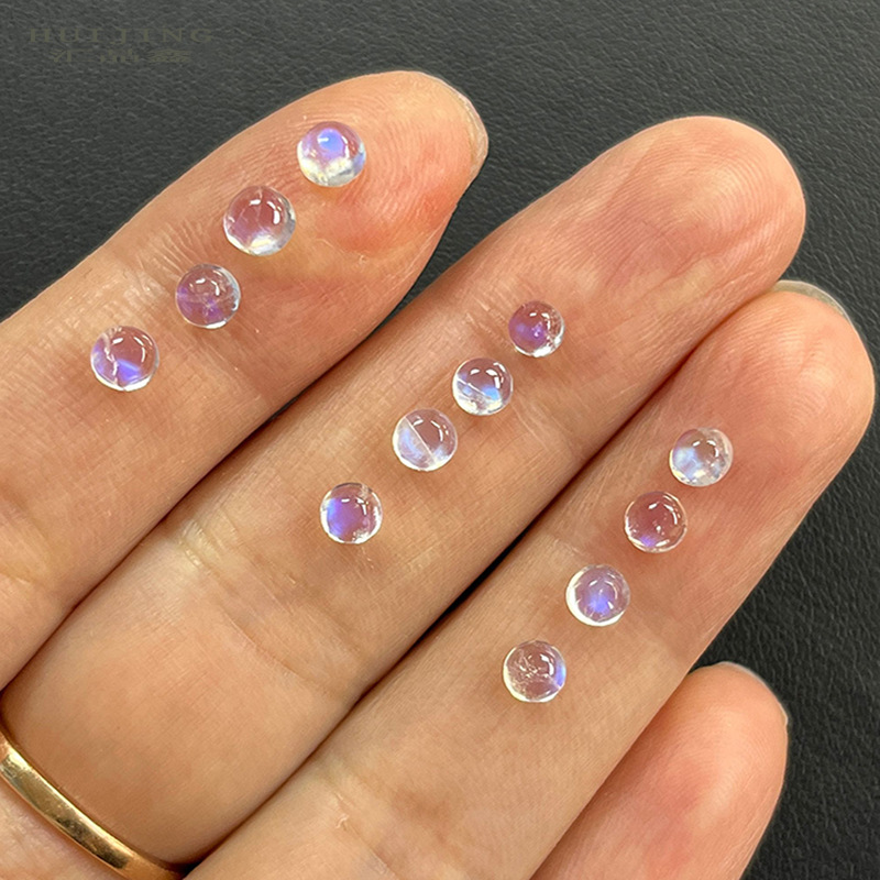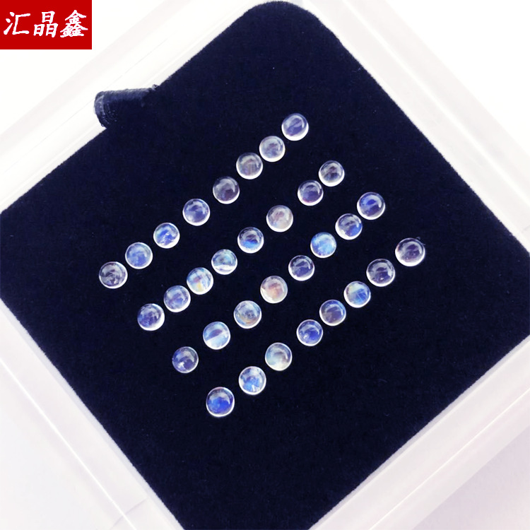 Натуральный синий лунный камень Поверхность кольца Голый камень Полукруг Плоское основание Обычная поверхность 2-6 мм Ювелирная инкрустация с камнем Европейский и американский стиль