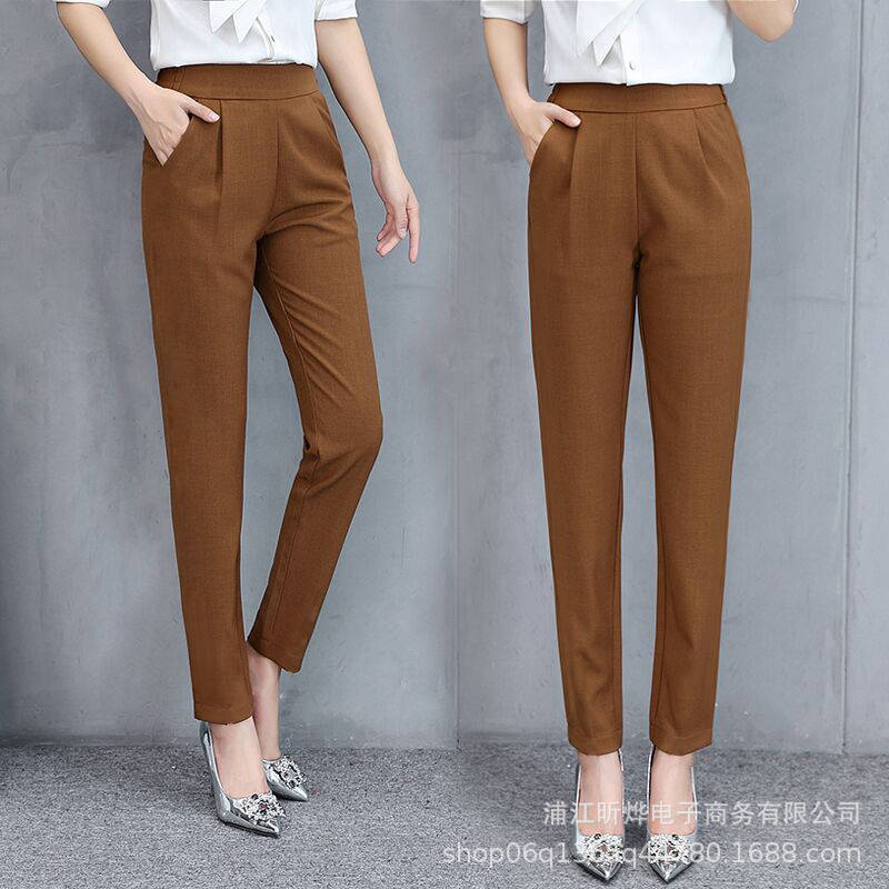 Весна 2020, приталенные эластичные женские брюки с высокой талией, универсальные брюки из Харлана в Корейском стиле, верхняя одежда, свободные облегающие Большие размеры для полных девушек
