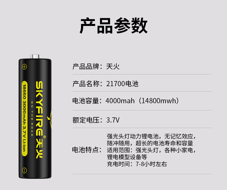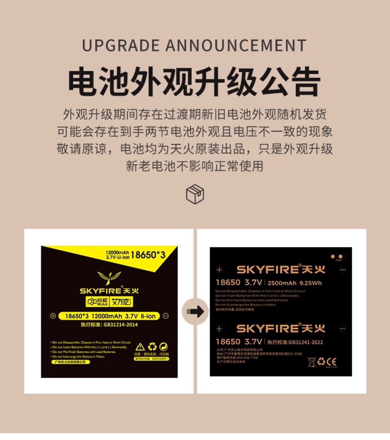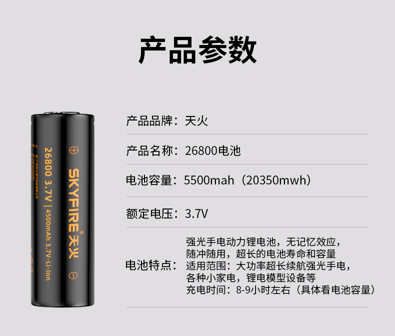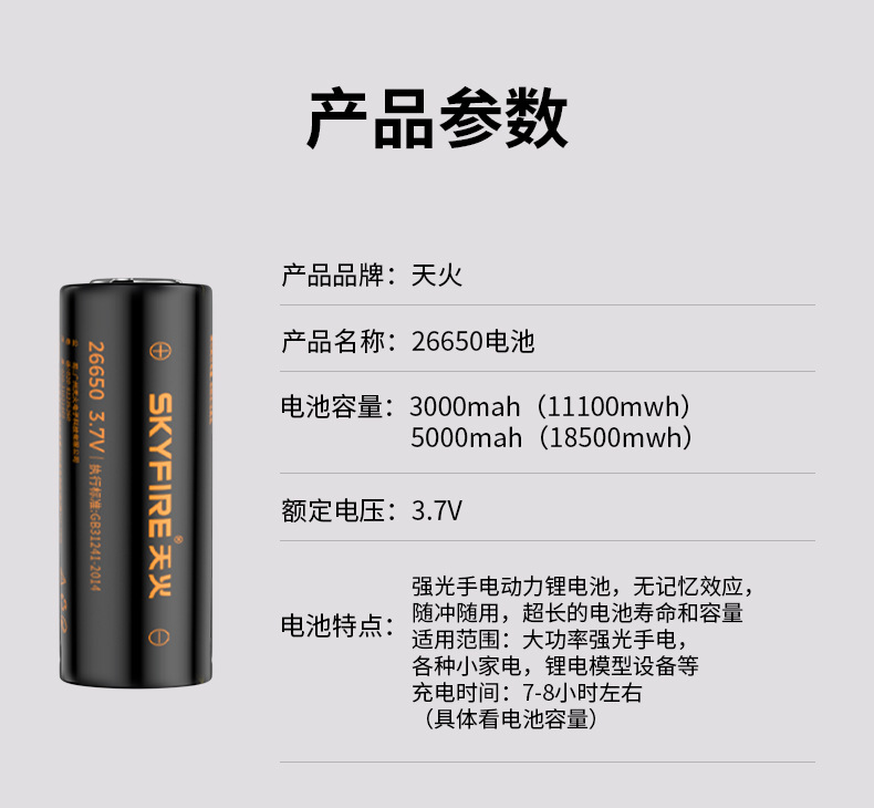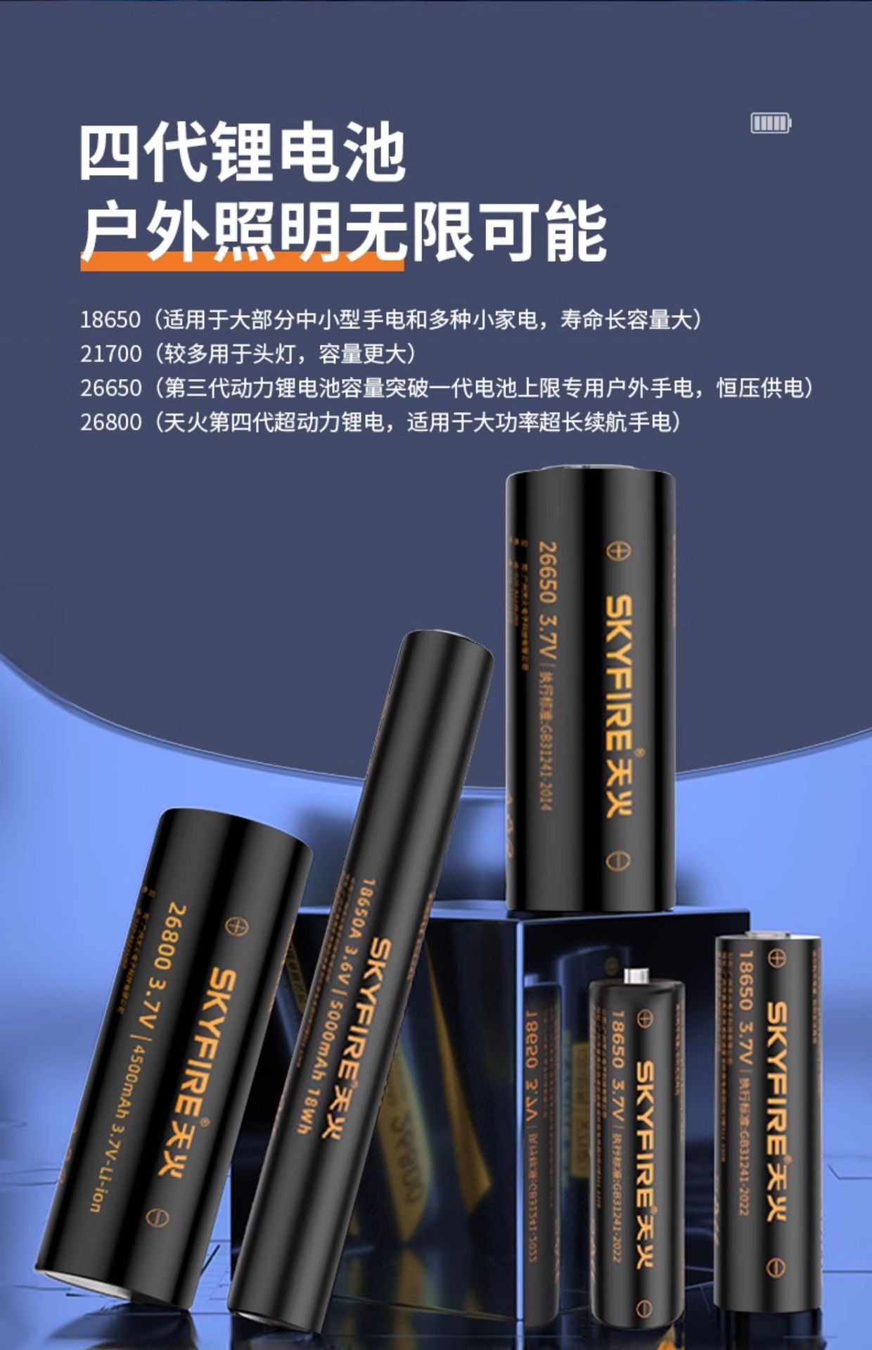 Tianhuo 26650 с заостренной головкой (3000 мА), одна секция; Наконечник Skyfire 26650 (5000 мАч/CCC); Аккумулятор Skyfire 21700 (нейтральный 4000 мАч); Tianhuo 26800 с заостренной головкой (4000 мАч) постоянного тока; Tianhuo 26800 с заостренной головкой (5000 мАч) постоянного тока; 711 Специальный аккумулятор Qinglong; Лазерная серебряная батарея (нейтральная без фирменной маркировки/18650*3 трехходовая/7500 мАч/CCC); Универсальная модель с заостренной головкой 26800 (5000 мАч); SF-Skyfire 26700 с заостренным наконечником (5000 мАч) универсальная модель постоянного тока