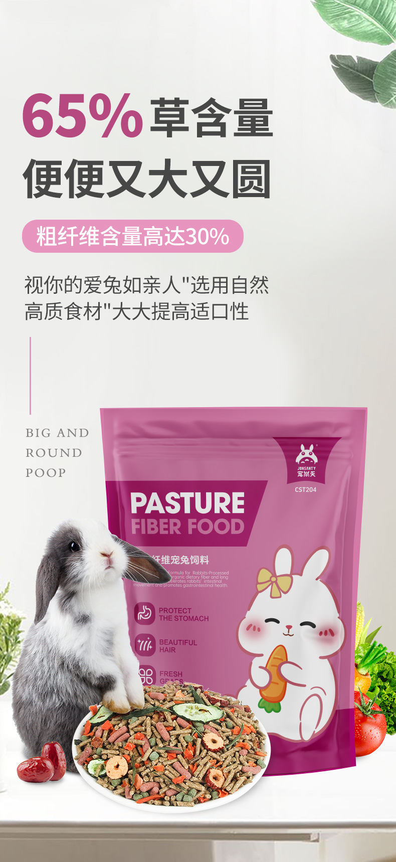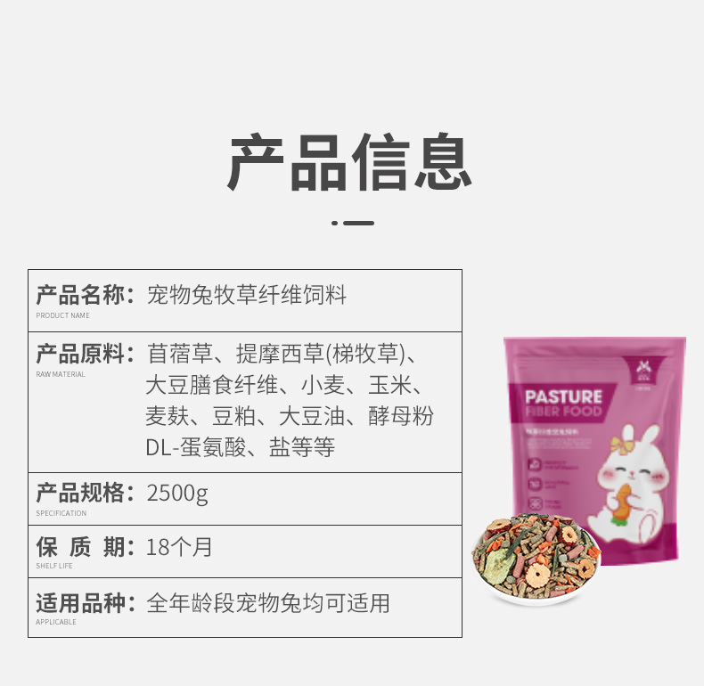 Корм для кроликов Chongshangtian, специализированный корм для молодых кроликов, корм для кроликов с отвислыми ушами, товары для кроликов-дwarf, 2.5kg упаковка