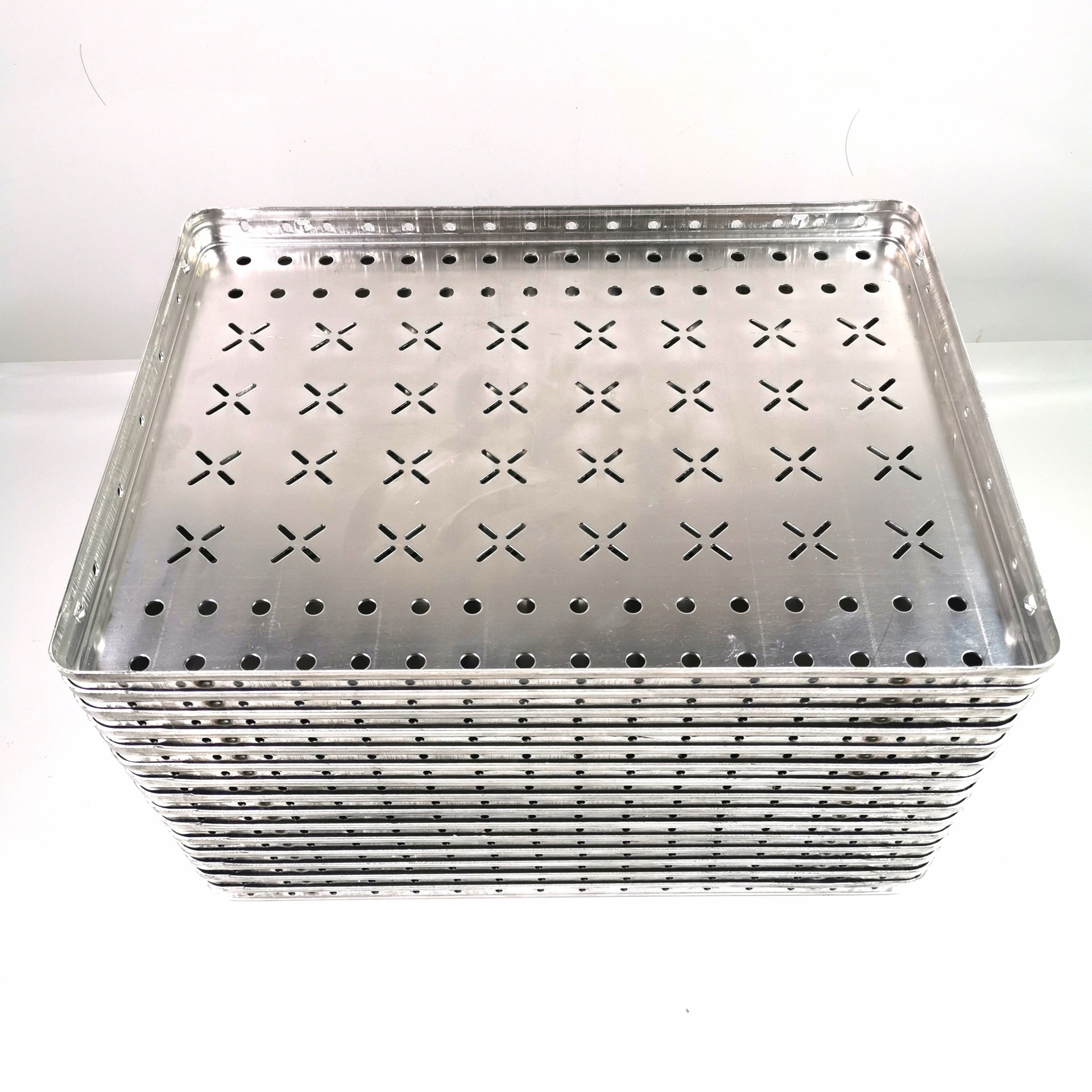 2、我厂铝盘的透气孔全部采用圆孔或椭圆形状,亲们可不要认为这个不好或是工厂为了方便偷工,这可全是为了亲们着想,采用圆孔、椭圆形状不破坏铝盘底部强度,同样厚度的铝盘强度增加20%以上。而且若用十字孔的话,十字的四个花瓣容易向上翘,造成两块线路板之间容易相插进去;