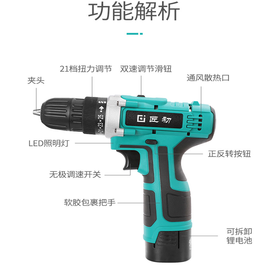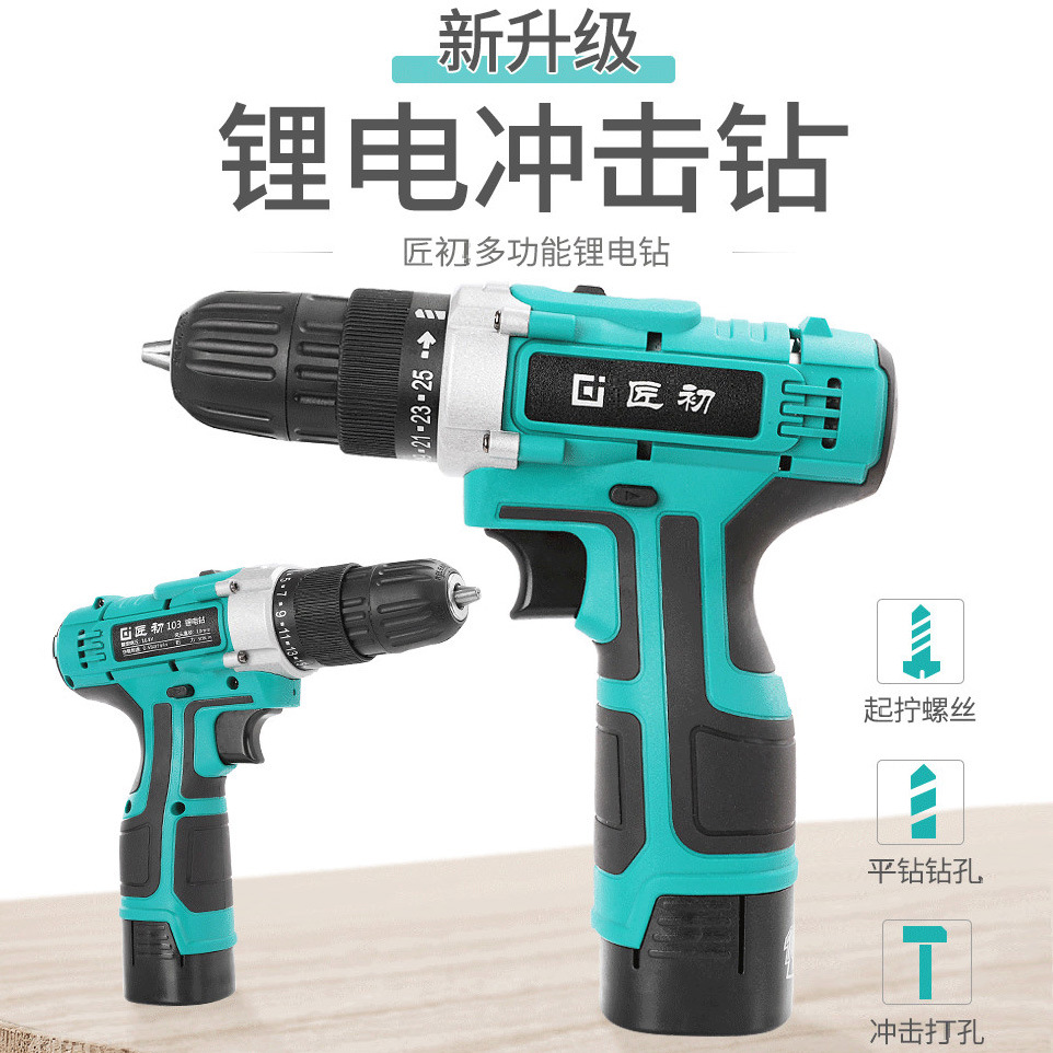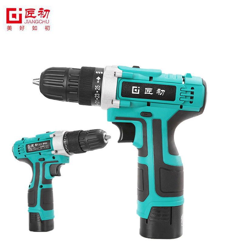 Электрическая ручная дрель Jiangchu, ударная дрель-шуруповерт пистолетного типа с литий-ионным аккумулятором, бытовой аккумуляторный шуруповерт, электрическая отвертка с высокой скоростью вращения.