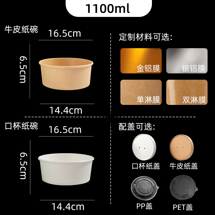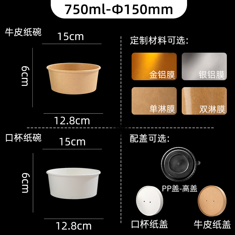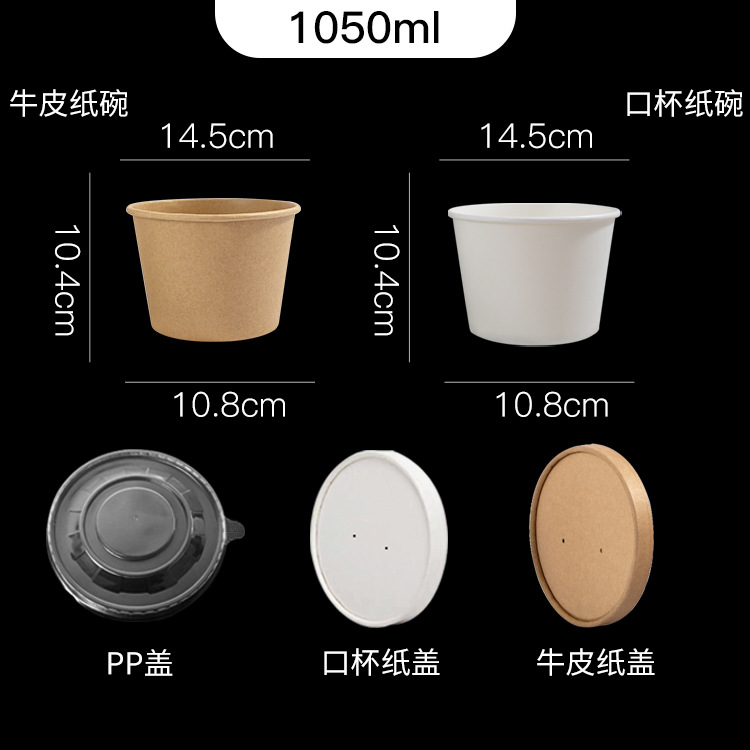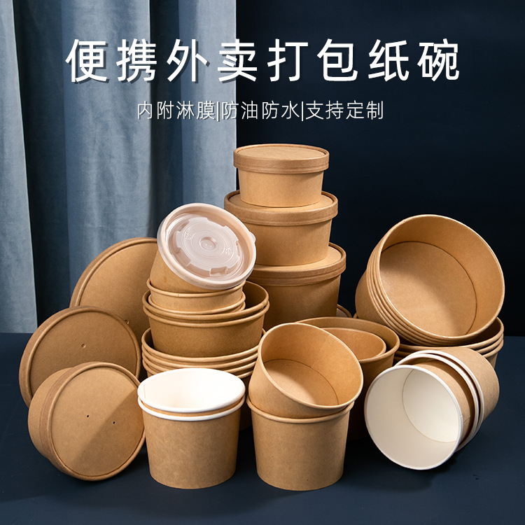 Одноразовая бумажная миска на вынос, ведро для супа, миска для супа, настраиваемый логотип, миска из крафт-бумаги, бумажная миска для салата, круглая упакованная коробка для завтрака
