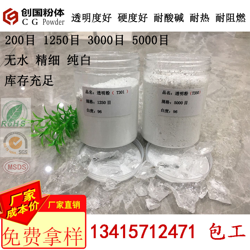 2、透明粉采用高纯度单一矿品加工,纯度高、白度高,明显优于市场一般产品,应用于油性木器漆中具有透明度高,色相纯正稳定,分散性、防沉性、打磨性、流平性俱佳,尤其是用于PE木器漆中可大量添加,添加量一般为配方的5-10%,最多可达15%。在PU与UV体系,考虑到发白风险,可适量添加,一般为5~10%。