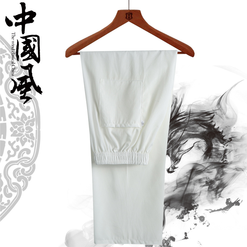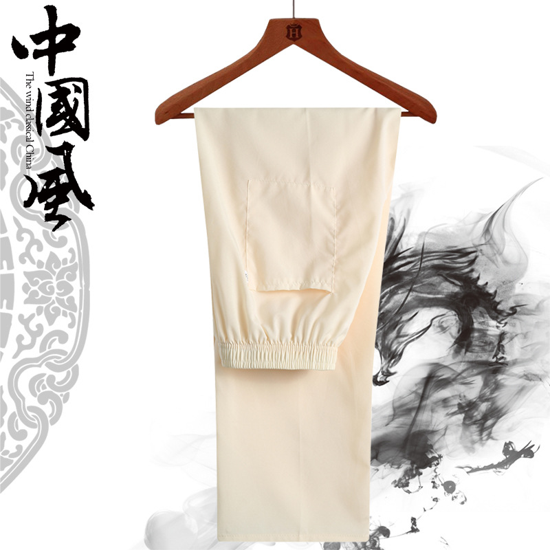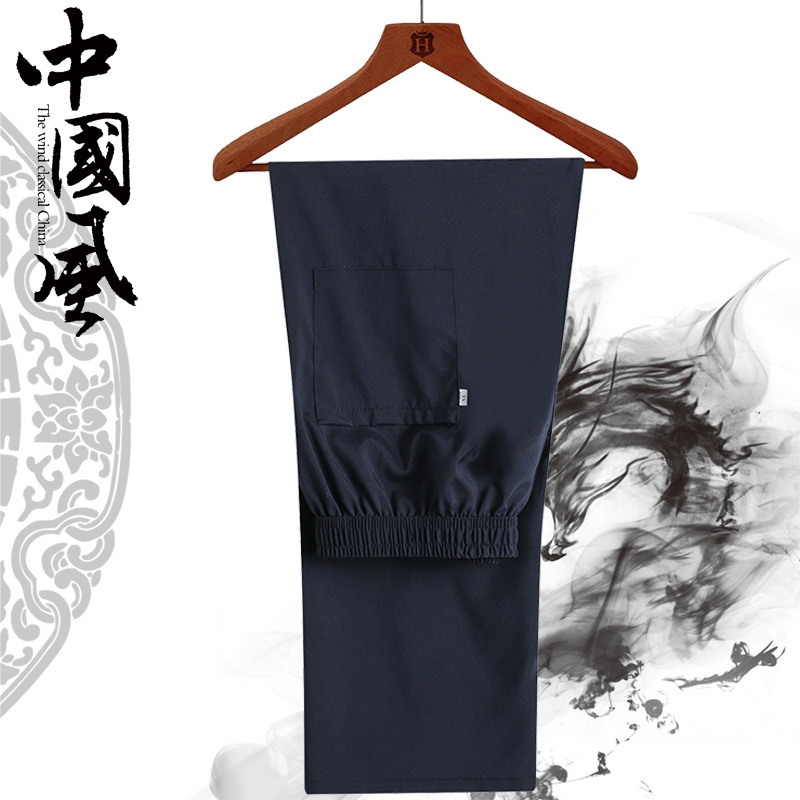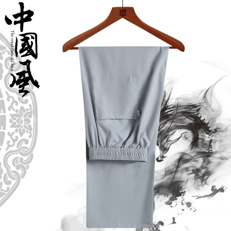 Летние мужские брюки Китайский стиль прямого кроя для пожилых людей, свободные повседневные брюки, мужские утренние брюки тонкие