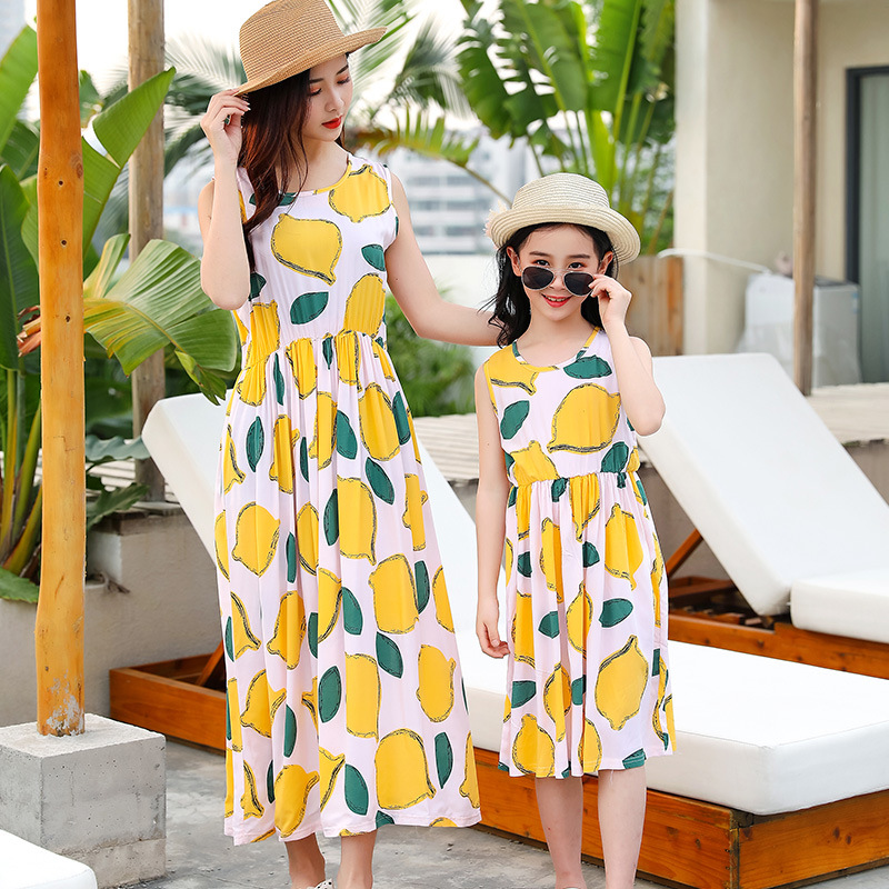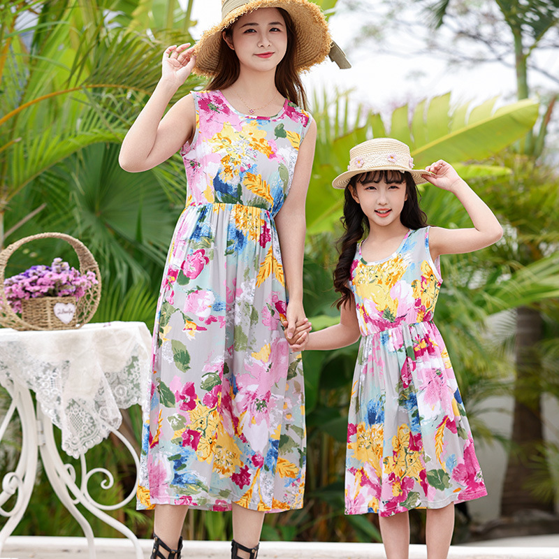 Платье для родителей и детей, хлопковое шелковое платье для мамы и дочки, ночная рубашка для девочек, большой детский хлопковый Шелковый жилет, платье, женское пляжное летнее
