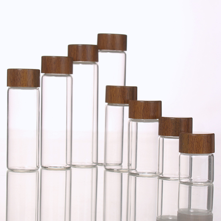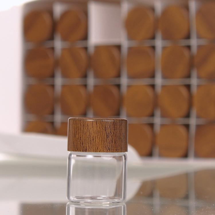 Диаметр 24 мм, винтовая герметичная прозрачная маленькая стеклянная бутылка с контролируемой крышкой из древесины, 10 мл, стеклянная бутылка с мятным маслом, бутылка для образцов