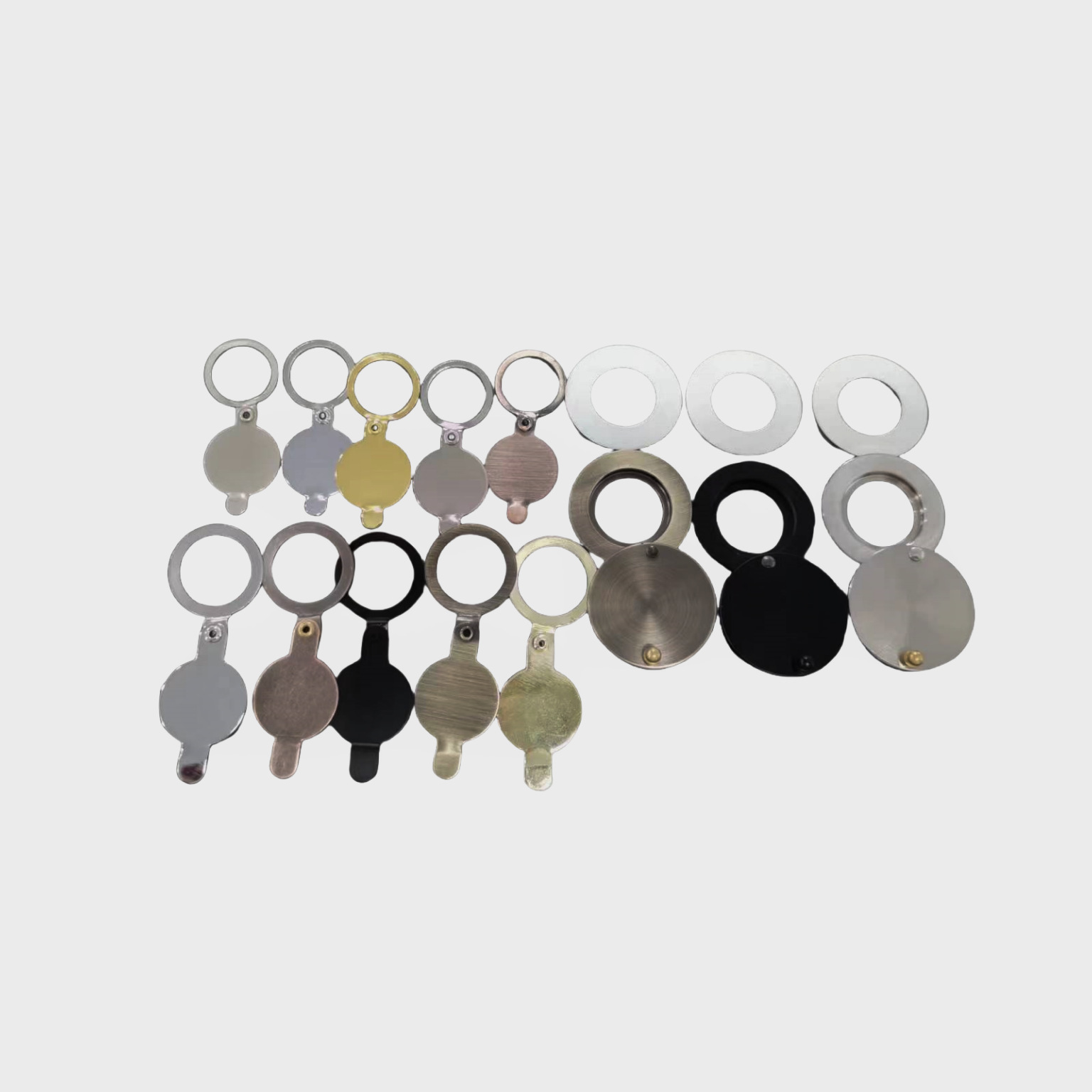 Черный - задняя крышка внутреннего диаметра 16 мм, круглая разделенная толстая крышка внешнего диаметра 30 мм + 2 куска двусторонней ленты; Яркий хром - внутренний диаметр хвостовой крышки 16 мм, внешний диаметр разделенной толстой крышки 30 мм + 2 куска двустороннего скотча.; Красная бронза - внутренний диаметр хвостовой крышки 16 мм, внешний диаметр толстой разделенной крышки 30 мм + 2 куска двусторонней ленты; Матовый никель - внутренний диаметр хвостовой крышки 16 мм, внешний диаметр толстой разрезной крышки 30 мм + 2 куска двусторонней ленты; Золото - хвостовая крышка внутреннего диаметра 16 мм, внешний диаметр 30 мм, толщина спилка + 2 двусторонних ленты.; Бронза - внутренний диаметр хвостовой крышки 16 мм, внешний диаметр толстой разделенной крышки 30 мм + 2 куска двустороннего скотча.; Матовый никель - квадратная толстая крышка - внутренний диаметр 16 мм, внешний диаметр 30 мм, квадратная толстая крышка (2 куска двустороннего скотча в комплекте); Желтая бронза матовая - квадратная толстая крышка - внутренний диаметр 16 мм, внешний диаметр 30 мм квадратная толстая крышка (2 куска двустороннего скотча в комплекте); Черный - квадратная толстая крышка - внутренний диаметр 16 мм, внешний диаметр 30 мм квадратная толстая крышка (2 куска двустороннего скотча в комплекте); Яркий хром - квадратная толстая крышка - внутренний диаметр 16 мм, внешний диаметр 30 мм, квадратная толстая крышка (2 куска двустороннего скотча в комплекте); Красная бронза - внутренний диаметр 14 мм, внешний диаметр 18,5 мм, тонкая крышка с разрезом (без двусторонней ленты); Черный - внутренний диаметр 14 мм, внешний диаметр 18,5 мм, тонкая крышка с разрезом (без двусторонней ленты); Яркий хром - внутренний диаметр 14 мм, внешний диаметр 18,5 мм, разделенная тонкая крышка (без двусторонней ленты); Цвет матовый никель - внутренний диаметр 14 мм, внешний диаметр 18,5 мм, тонкая крышка с разрезом (без двусторонней ленты); Золото - внутренний диаметр 14 мм, внешний диаметр 18,5 мм, разделенная тонкая крышка (без двусторонней ленты); Бронза - внутренний диаметр 14 мм, внешний диаметр 18,5 мм, тонкая крышка с разрезом (без двусторонней ленты); Красная бронза - внутренний диаметр 16 мм, внешний диаметр 20 мм, тонкая крышка с разрезом (без двусторонней ленты); Черный - внутренний диаметр 16 мм, внешний диаметр 20 мм, тонкая крышка с разрезом (без двусторонней ленты); Яркий хром - внутренний диаметр 16 мм, внешний диаметр 20 мм, разрезная тонкая крышка (без двусторонней ленты); Матовый никель - внутренний диаметр 16 мм, внешний диаметр 20 мм, разрезная тонкая крышка (без двусторонней ленты); Золото - внутренний диаметр 16 мм, внешний диаметр 20 мм, тонкая крышка с разрезом (без двусторонней ленты); Бронза - внутренний диаметр 16мм, внешний диаметр 20мм, тонкая крышка с разрезом (без двусторонней ленты)