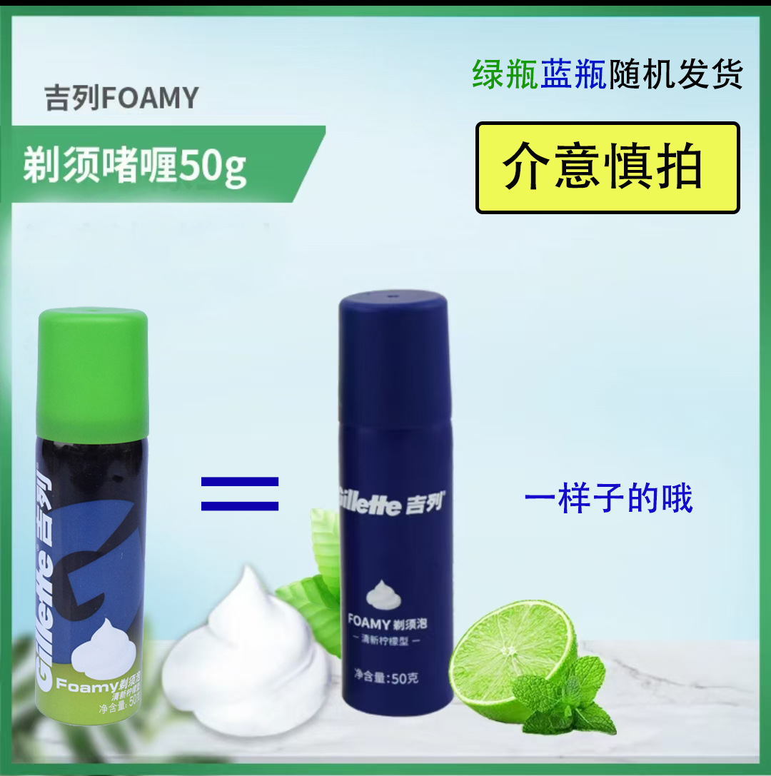 Пена для бритья Gillette 50г, мужской крем для бритья, пена для бритвы, свежий лимонный тип, сине-зеленая бутылка, отправка случайного цвета