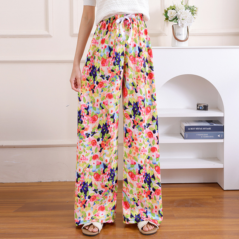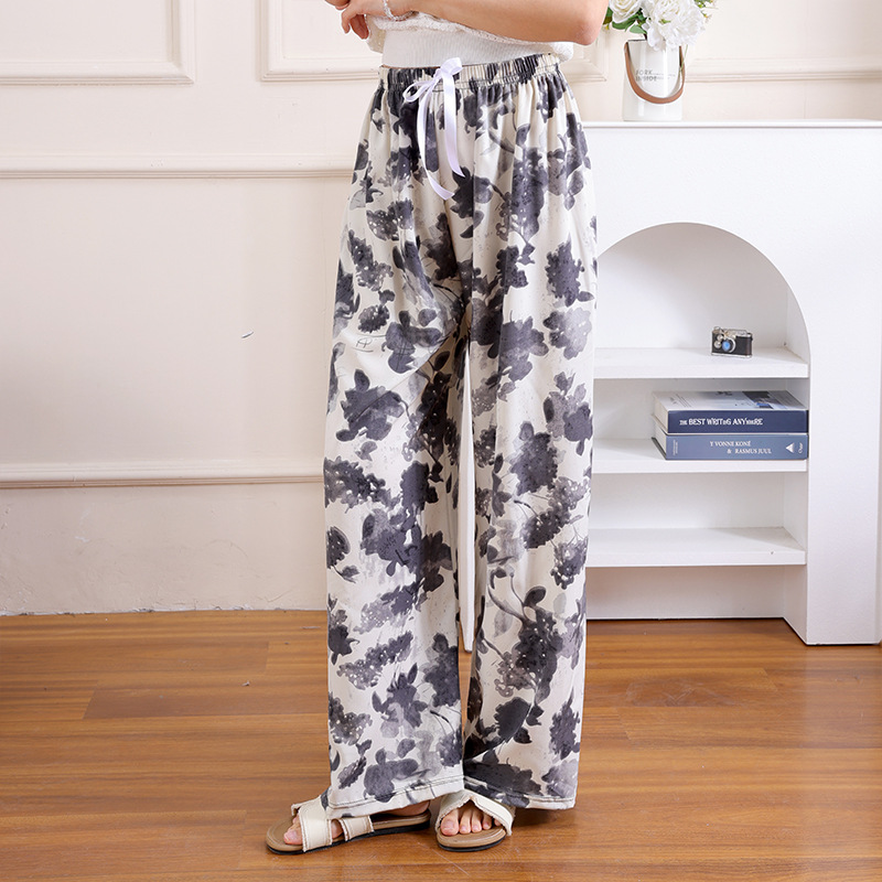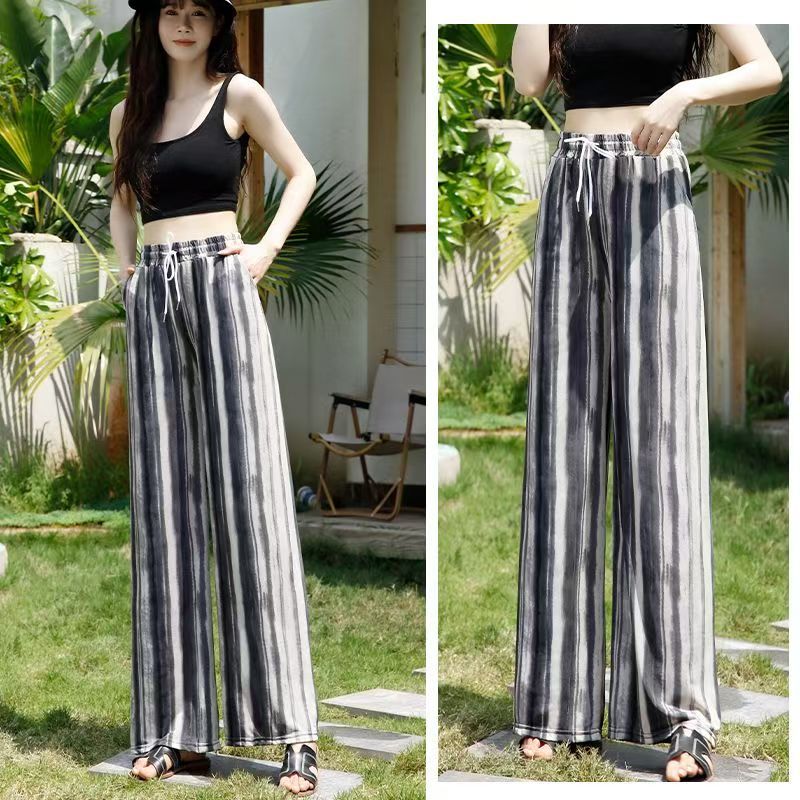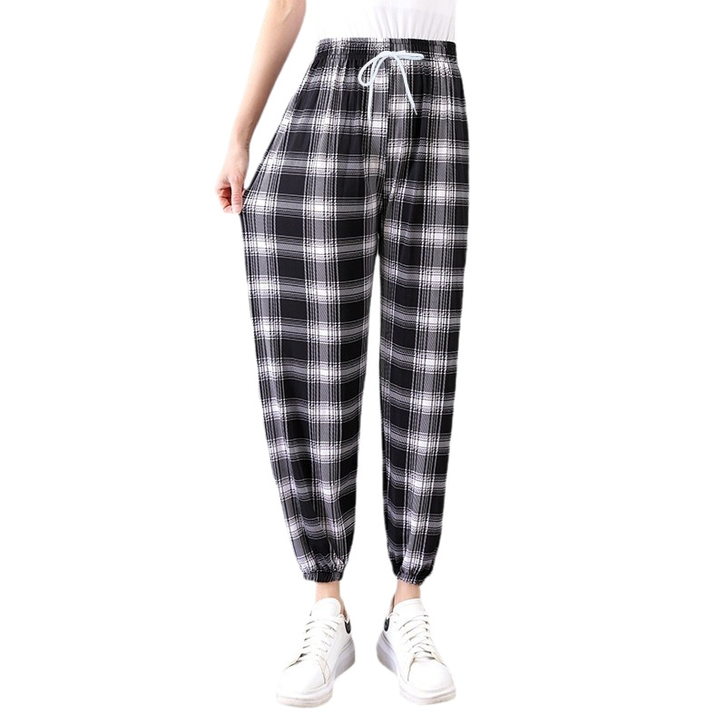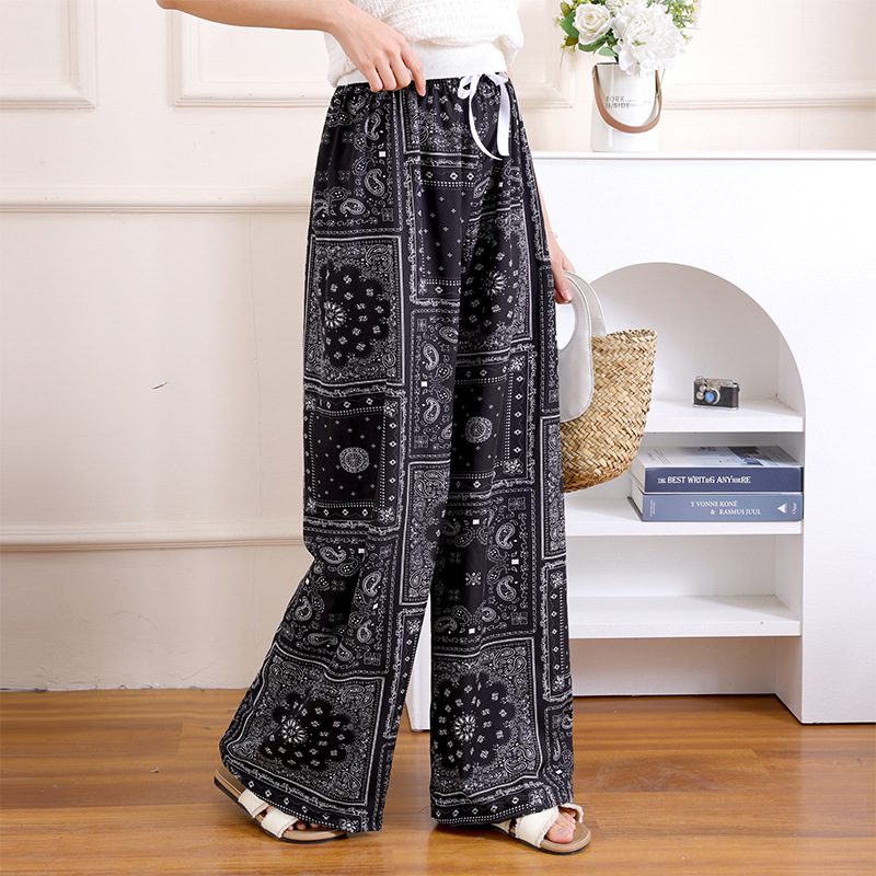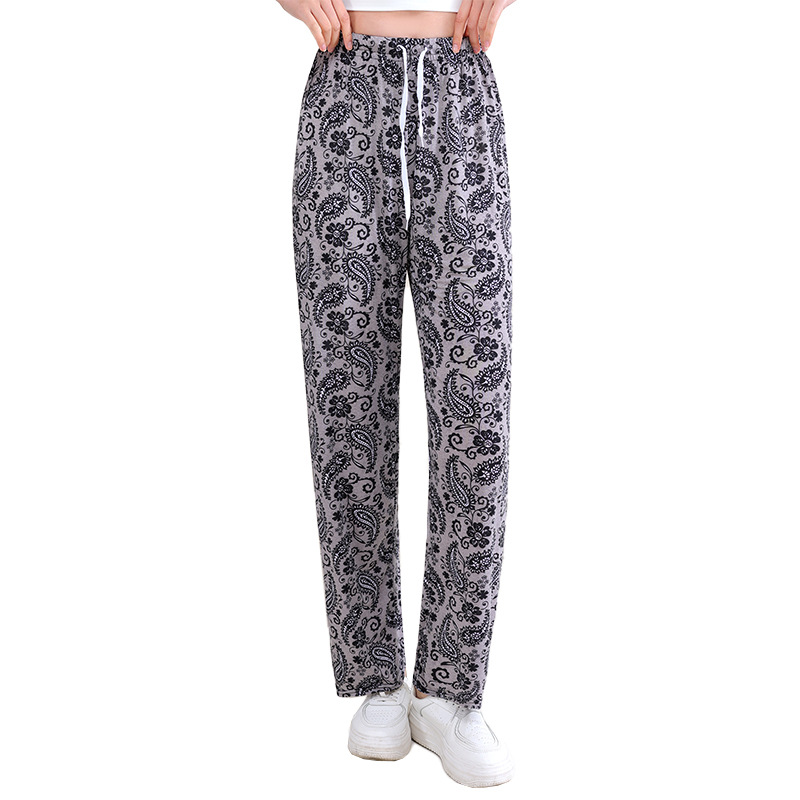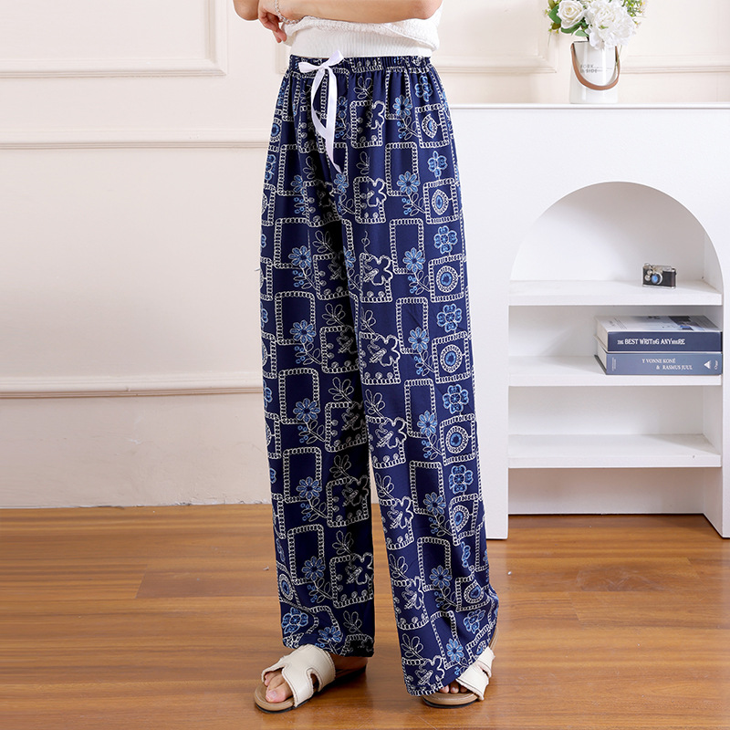 Летние женские брюки из ледяного шелка для женщин среднего и старшего возраста, свободный крой, большие размеры, эластичный пояс, повседневные брюки длиной до щиколотки, брюки с защитой от комаров для мам.
