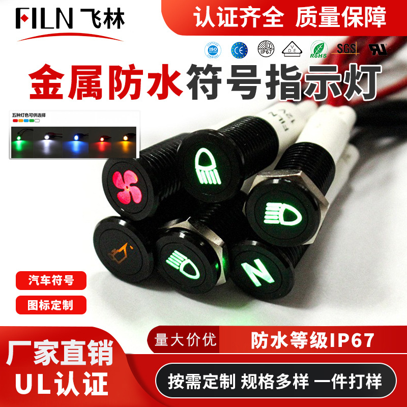 Светодиодный индикатор 10 мм, водонепроницаемый сигнальный индикатор 12В для тюнинга автомобилей, специальный индикатор-символ