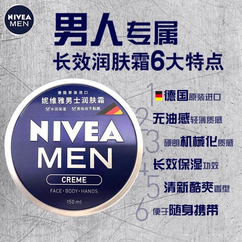 Nivea/Nivea Мужской увлажняющий крем 150 мл Глубокий увлажняющий увлажняющий крем освежающий