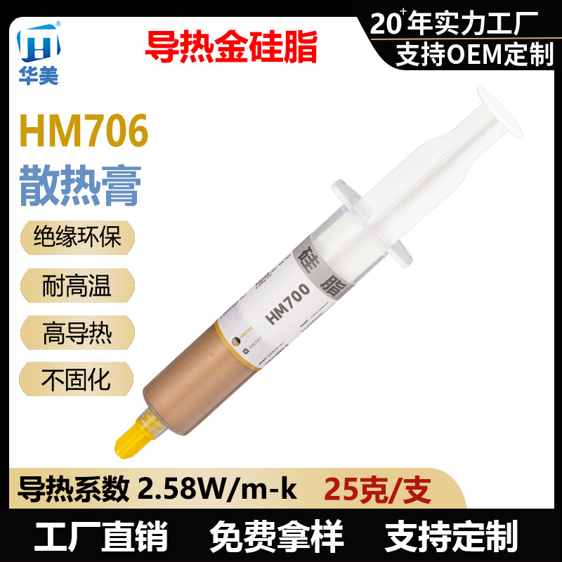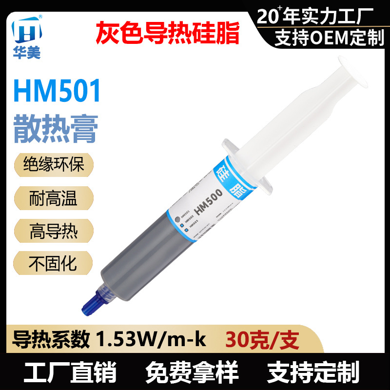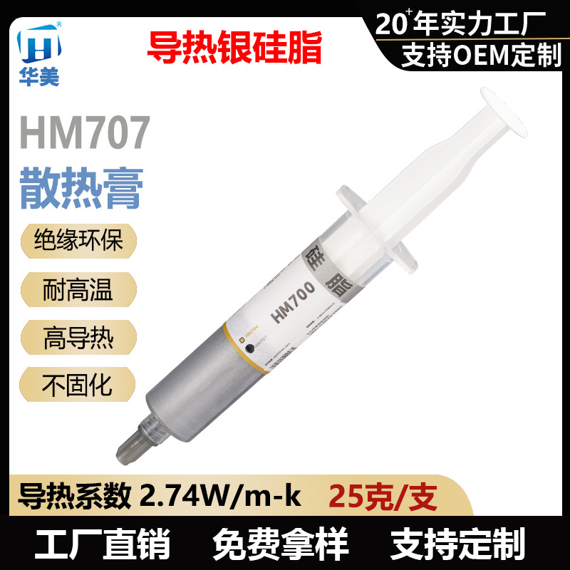 Белая силиконовая смазка HM401 в игольчатой трубке, вес нетто 30 г - теплопроводность 1,0 Вт.; Силиконовая смазка серого цвета HM501 в игольчатой трубке, вес нетто 30 г - теплопроводность 1,53 Вт.; Силиконовая смазка серого цвета HM601 в игольчатой трубке, вес нетто 30 г - теплопроводность 2,5 Вт.; Силиконовая смазка серого цвета HM602 в игольчатой трубке, вес нетто 30 г - теплопроводность 3,0 Вт.; Силиконовая смазка серого цвета HM603 в игольчатой трубке, вес нетто 30 г - теплопроводность 3,5 Вт.; Силиконовая смазка HM706 с золотым наполнителем в игольчатой трубке, вес нетто 25 г - теплопроводность 2,58 Вт.; Серебряная силиконовая смазка HM707 в игольчатой трубке, вес нетто 25 г - теплопроводность 2,74 Вт.; Силиконовая смазка HM801 серая в игольчатой трубке, вес нетто 30 г - теплопроводность 4,0 Вт.; Силиконовая смазка серого цвета HM802 в игольчатой трубке, вес нетто 30 г - теплопроводность 5,0 Вт.; Силиконовая смазка серого цвета HM803 в игольчатой трубке, вес нетто 30 г - теплопроводность 6,5 Вт.