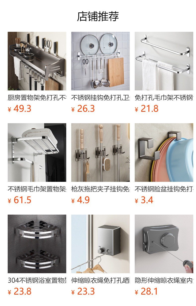 (1)此款仅可(免打孔)安装,配免钉胶水。没有孔位,不能打孔。