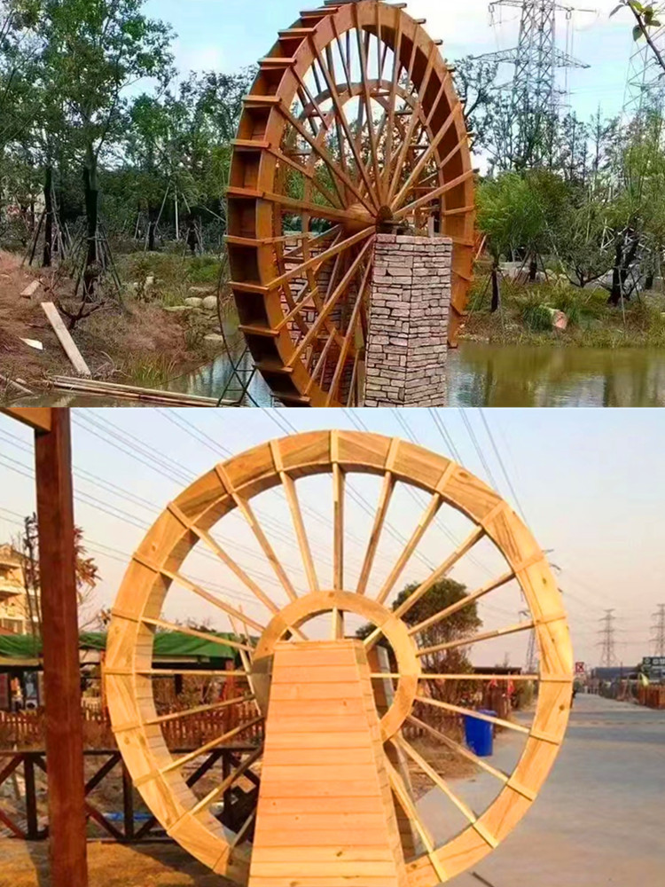Большое деревянное водяное колесо, уличное антикоррозийное деревянное пейзажное дерево, красивая пасторальная педаль ветряной мельницы из цельного дерева