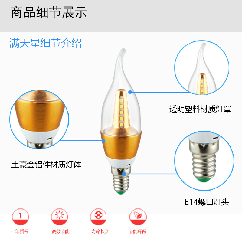 各位亲,请注意了,我司有LED蜡烛灯、塑料蜡烛灯、LED满天星蜡烛灯、LED球泡灯销售,量大从优,厂家直销。我们是默认发E14螺口灯头的哦,需要修改