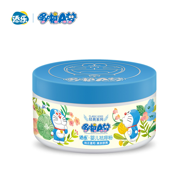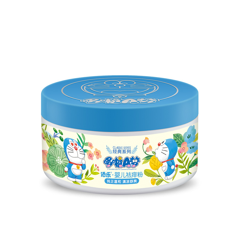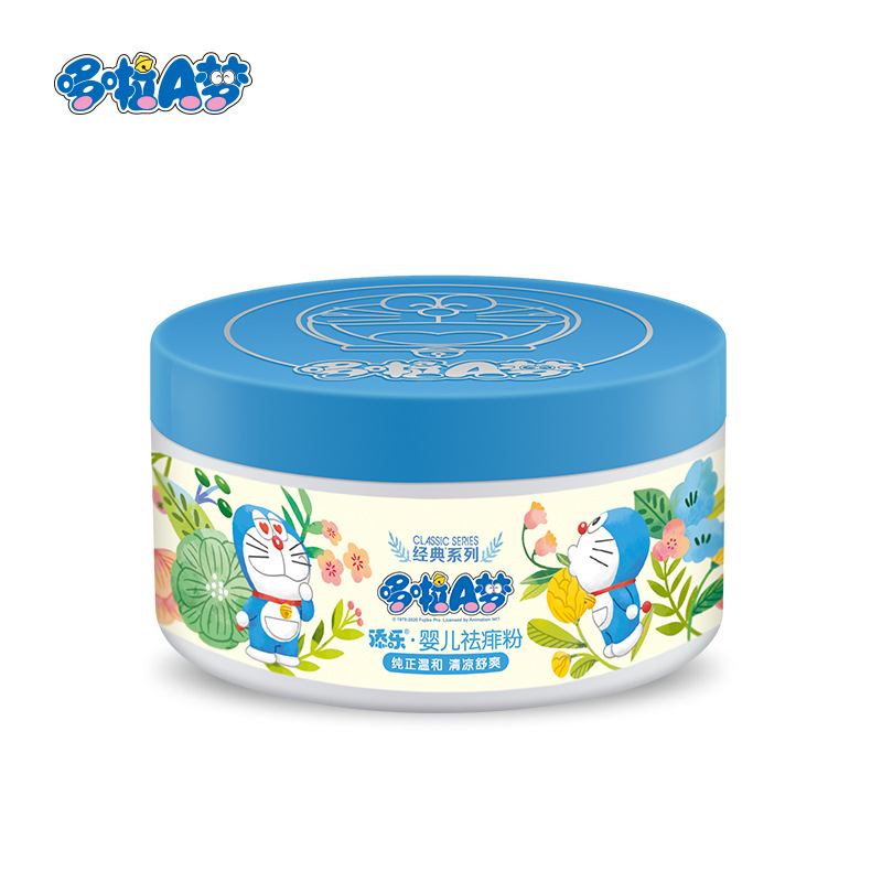 Детская присыпка Tianle Doraemon для новорожденных, всесезонная детская присыпка для поглощения пота с пуховкой, детская присыпка.