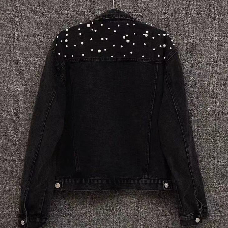 AliExpress Amazon Explosions желает, новое джинсовое пальто с бусинами, Универсальный женский свободный облегающий топ с жемчугом