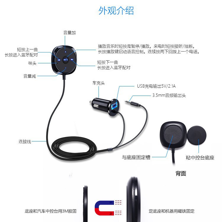 – 轻松简单的将您的汽车音响升级为蓝牙免提无线音响!