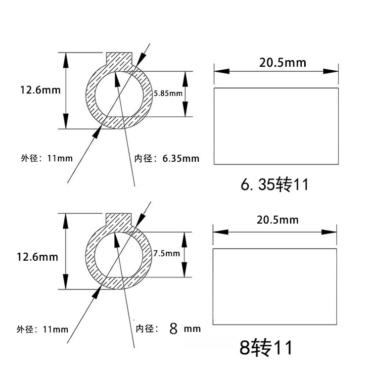 Внутреннее отверстие D-типа от 6,35 мм до 11 мм; Внутреннее отверстие D-типа от 8 мм до 11 мм