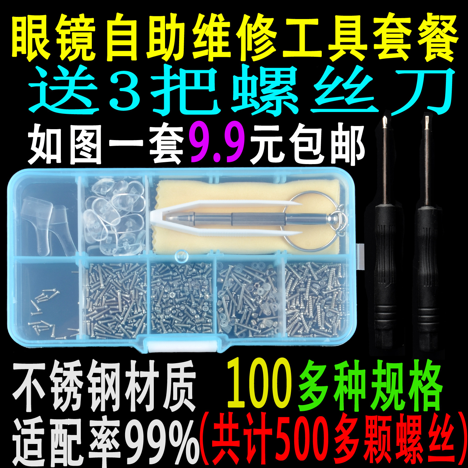 Очки аксессуары Запчасти пакет Ремонт Винт силиконовая прокладка носа отвертка для глаз зеркальная ткань маленький Пинцет зажим