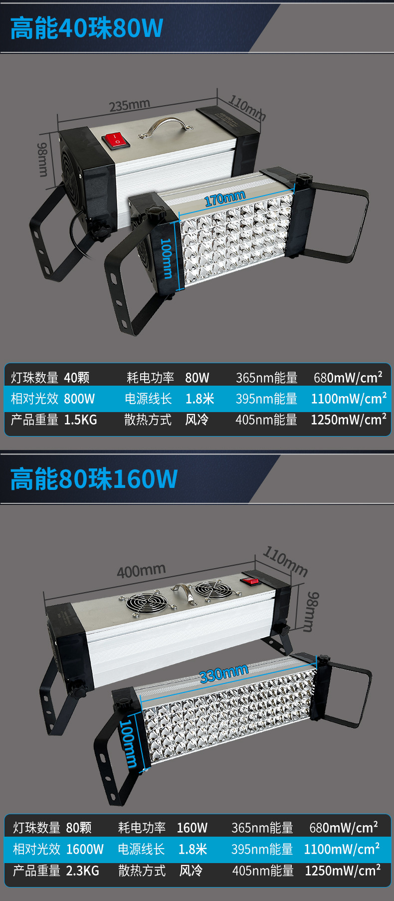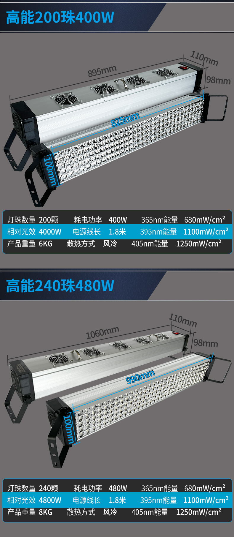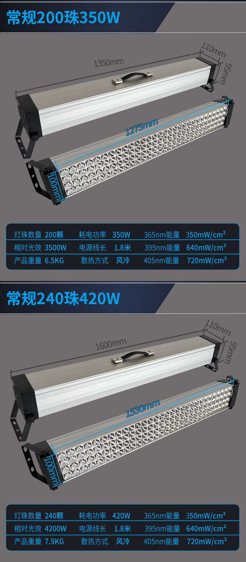 Специальное предложение 36 бусин 40Вт-395нм; Обычные 40 бусин 70 Вт-395 нм; Обычные 40 бусин 70 Вт-365 нм; Обычные 40 бусин 70 Вт-405 нм; Стандартные 40 светодиодов, 70 Вт — широкая длина волны; Обычные 80 бусин 140 Вт-395 нм; Обычные 80 бусин 140 Вт-365 нм; Обычные 80 бусин 140 Вт-405 нм; Обычные 120 бусин 210 Вт-395 нм; Обычные 120 бусин 210 Вт-365 нм; Обычные 120 бусин 210 Вт-405 нм; Обычные 160 бусин 280 Вт-395 нм; Обычные 160 бусин 280 Вт-365 нм; Обычные 160 бусин 280 Вт-405 нм; Обычные 200 бусин 350 Вт-395 нм; Обычные 200 бусин 350 Вт-365 нм; Обычные 200 бусин 350 Вт-40 нм; Ниже представлена высокопрочная модель.; Высокая интенсивность 40 бусин 80 Вт-395 нм; Высокая интенсивность 40 бусин 80 Вт-365 нм; Высокая интенсивность 40 бусин 80 Вт-405 нм; Высокая интенсивность 80 бусин 160 Вт-395 нм; Высокая интенсивность 80 бусин 160 Вт-365 нм; Высокая интенсивность 80 бусин 160 Вт-405 нм; Высокая интенсивность 120 бусин 240 Вт-395 нм; Высокая интенсивность 120 бусин 240 Вт-365 нм; Высокая интенсивность 120 бусин 240 Вт-405 нм; Высокая интенсивность 160 бусин 320 Вт-395 нм; Высокая интенсивность 160 бусин 320 Вт-365 нм; Высокая интенсивность 160 бусин 320 Вт-405 нм; Высокая интенсивность 200 бусин 400 Вт-395 нм; Высокая интенсивность 200 бусин 400 Вт-365 нм; Высокая интенсивность 200 бусин 400 Вт-405 нм; Высокая интенсивность 240 бусин 480 Вт-395 нм; Высокая интенсивность 240 бусин 480 Вт-365 нм; Высокая интенсивность 240 бусин 480 Вт-405 нм; Высокая интенсивность 280 бусин 560 Вт-395 нм; Высокая интенсивность 280 бусин 560 Вт-365 нм; Высокая интенсивность 280 бусин 560 Вт-405 нм