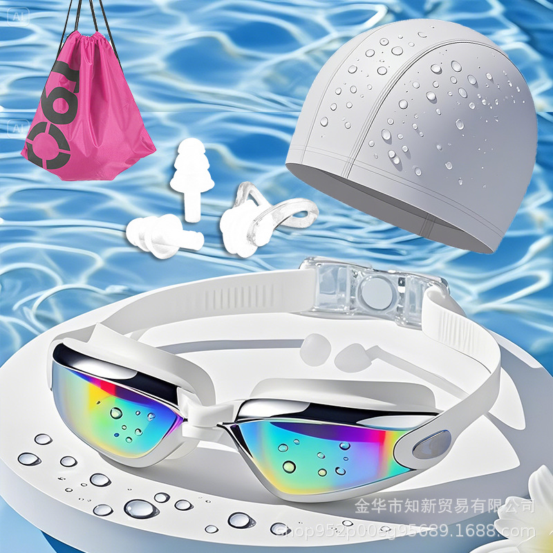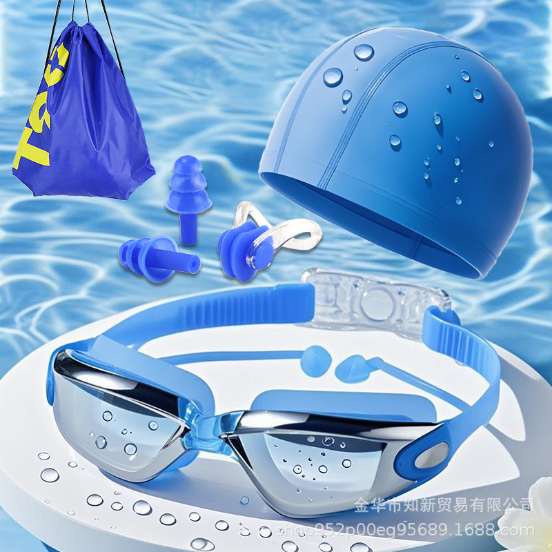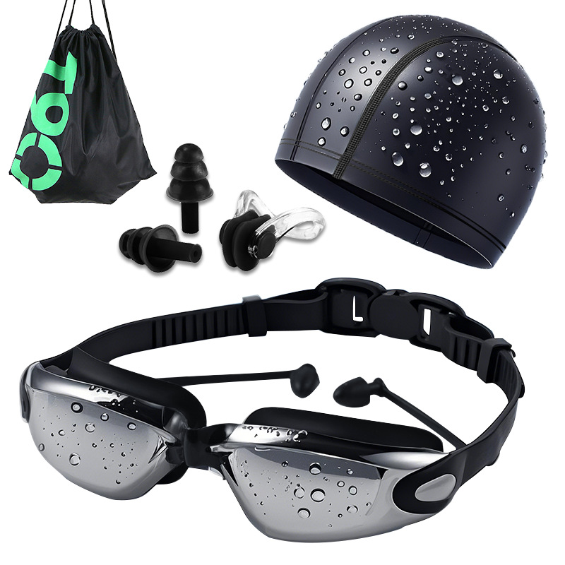 Очки для плавания HD водонепроницаемые и противотуманные очки для плавания для мужчин и женщин очки для плавания в большой оправе с затычками для ушей оборудование для шапочки для плавания трансграничный производитель