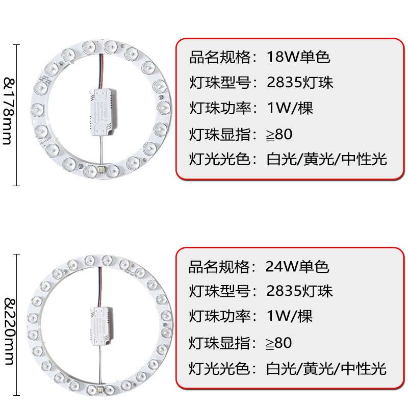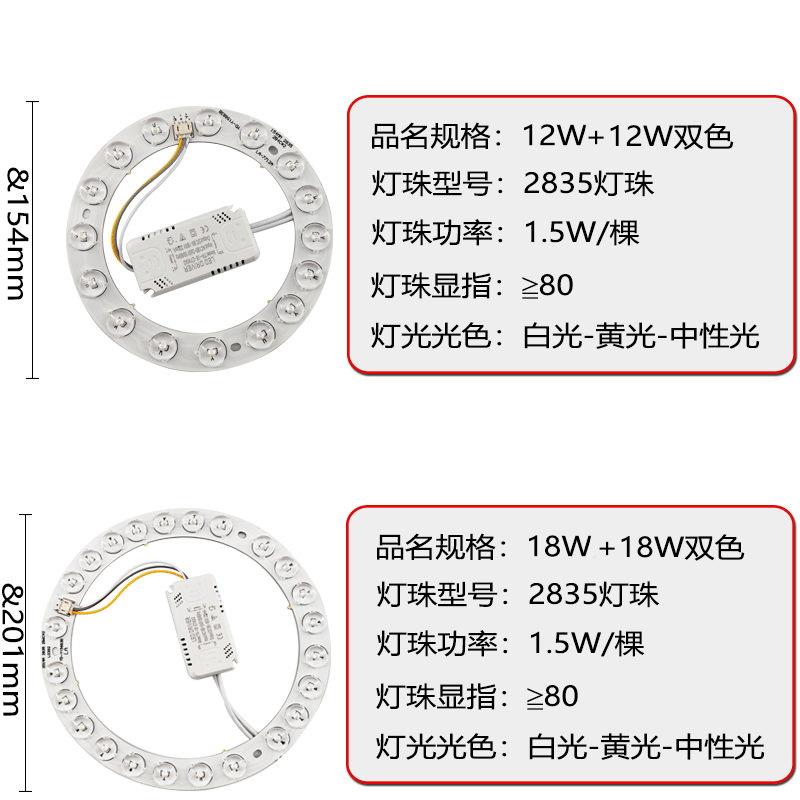 12 Вт белый свет; Белый свет 18 Вт; 24 Вт белый свет; Нейтральный свет 12 Вт; Нейтральный свет 18 Вт; Нейтральный свет 24 Вт; Желтый свет 12 Вт; Желтый свет 18 Вт; Желтый свет 24 Вт; 12 Вт, двухцветный; 18 Вт, двухцветный; 24 Вт, двухцветный